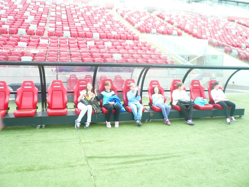 Wiele emocji i radości sprawiła uczniom wizyta na Stadionie Narodowym, w czasie której mieli możliwość podziwiać stadion z trybun, zobaczyć szatnię i zaplecze techniczne obiektu, wejść na płytę boiska.