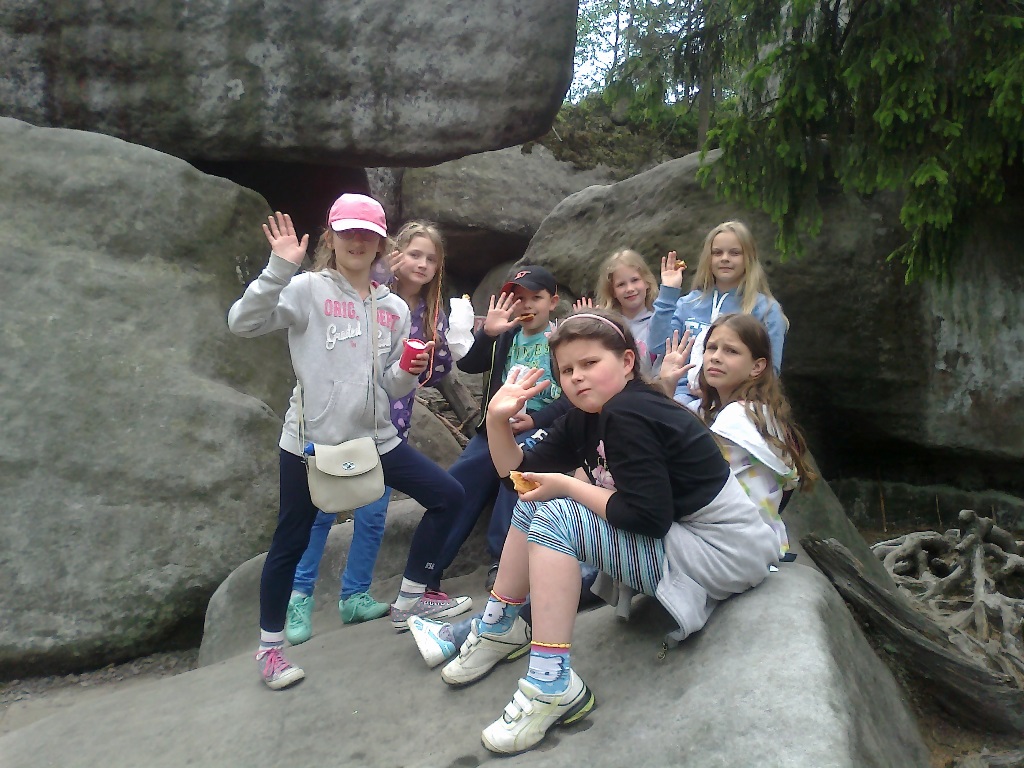 W dniach 10.06 - 12.06.2015r. uczniowie klasy II, IIIa i IIIb ze Szkoły Podstawowej w Dobrej pojechali na trzydniową wycieczkę do Kotliny Kłodzkiej. Program wyjazdu był bardzo napięty. Pierwszego dnia mali turyści spacerowali po "Ogrodzie Bajek" w Międzygórzu, pełnego tajemniczych ścieżek, bajkowych postaci i zaczarowanych zakątków. Następnie wspięli się na Górę Igliczną aby podziwiać Sanktuarium Matki Bożej Śnieżnej. Kolejnego dnia czekała ich przygoda w Kopalni Złota w Złotym Stoku. Z przewodnikiem, dzieci zwiedziły sztolnie, widziały podziemny wodospad, skarbiec oraz odbyły podróż podziemną kolejką. Na pamiątkę pobytu w kopalni każdy otrzymał pamiątkową monetę oraz dyplom. Następną atrakcją dla uczniów było zwiedzanie labiryntu skalnego Błędnych Skał. Dodatkowo tego dnia młodzi turyści odwiedzili jeszcze Sanktuarium w Wambierzycach oraz przespacerowali się po Parku Zdrojowym w Kudowie Zdrój. Ostatni dzień wycieczki to największy hit - Afrykarium oraz wrocławskie ZOO. Dzieci oniemiały z zachwytu przechadzając się wśród pływających ryb, rekinów, płaszczek i żółwi. Nie tylko atrakcje turystyczne przypadły dzieciom do gustu. Uczniowie spali w zamkowych komnatach na zamku w Międzylesiu. Każdy mógł się tam poczuć jak prawdziwy książę czy księżniczka. Wyjazd na długo pozostanie w pamięci turystów ze Szkoły Podstawowej w Dobrej.