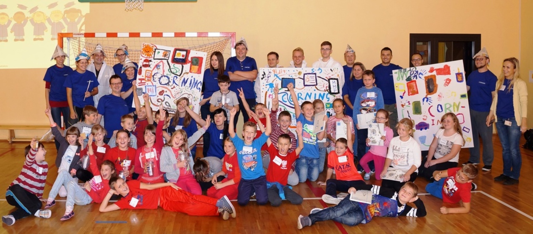 Pani Dyrektor, grono pedagogiczne i uczniowie Szkoły Podstawowej w Dobrej serdecznie dziękują inicjatorom spotkania oraz całemu zespołowi firmy Corning.