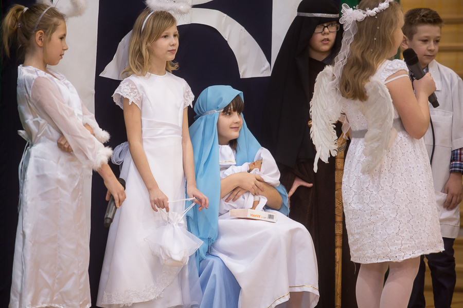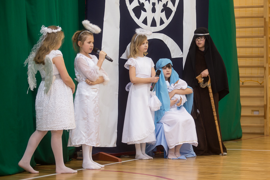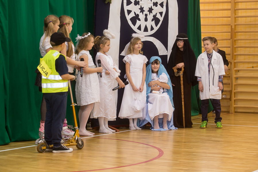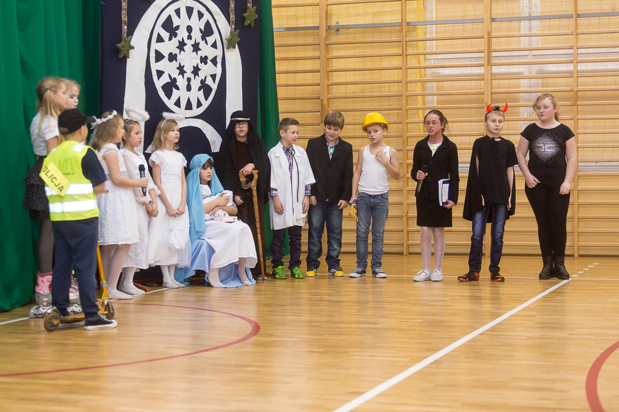 Boże Narodzenie to czas niezwykły: pełen rodzinnego ciepła, radości, oczekiwań, ale i spełnienia marzeń. Ta atmosfera panowała także w naszej szkole. 22 grudnia odbyły się klasowe Wigilie. Następnie, jak co roku, w sali gimnastycznej przeżyliśmy historię, związaną z narodzeniem Pana Jezusa. W tym roku jasełka były nieco żartobliwie, bo nie zabrakło wójta i policjanta. Nie mogło się obyć, oczywiście, bez aniołów i diabłów. Jasełka przygotowali: p. Ewa Woźniarska i ks. Jakub Orzechowski z udziałem dzieci z klasy IV a, wspomaganych przez anioła z klasy IV b - Klaudię Majewską. Życzenia świąteczne i noworoczne składały uczennice: Roksana Kubiak i Małgorzata Maliszewska z klasy V. Autorkami pięknej scenografii były panie: Elżbieta Zielińska, Justyna Studzińska i Marta Gudaj.