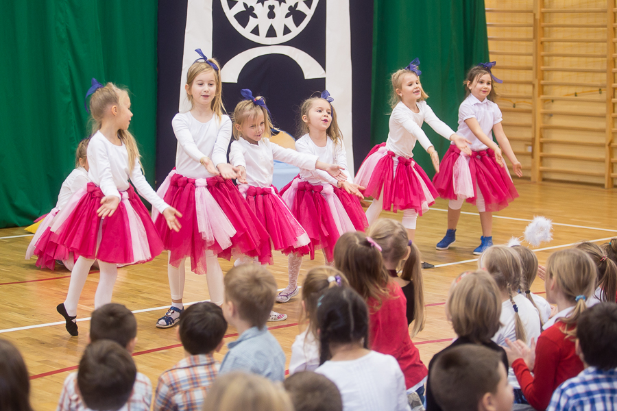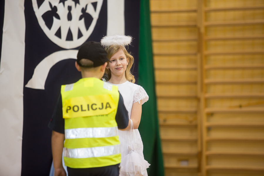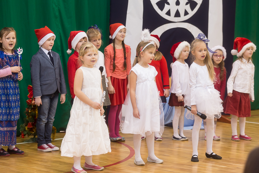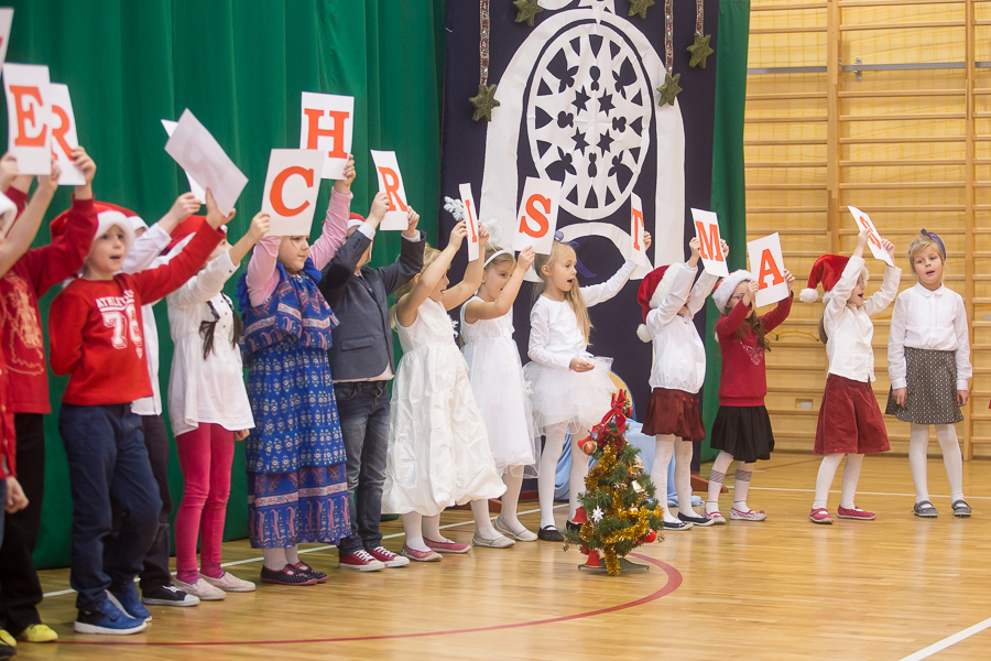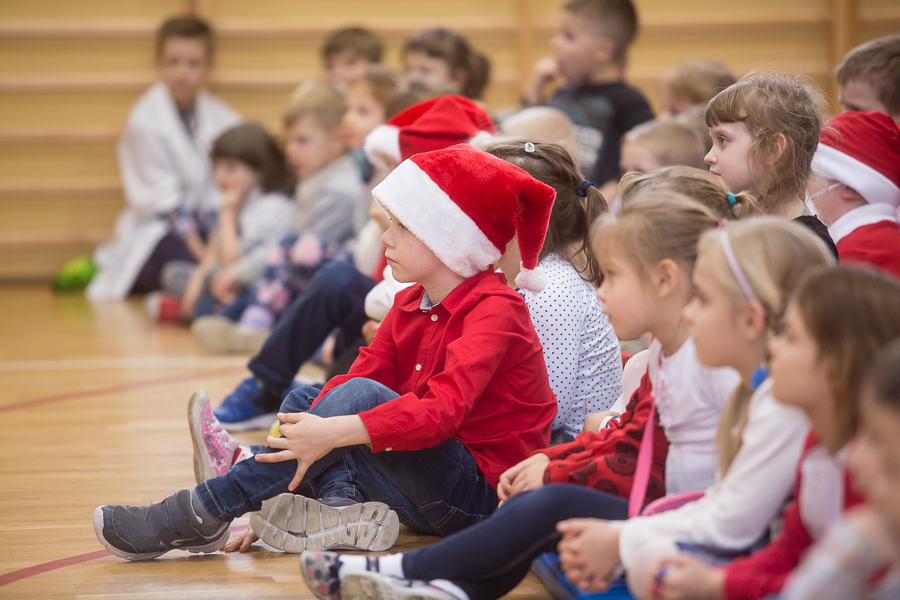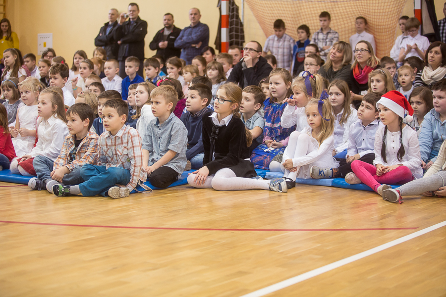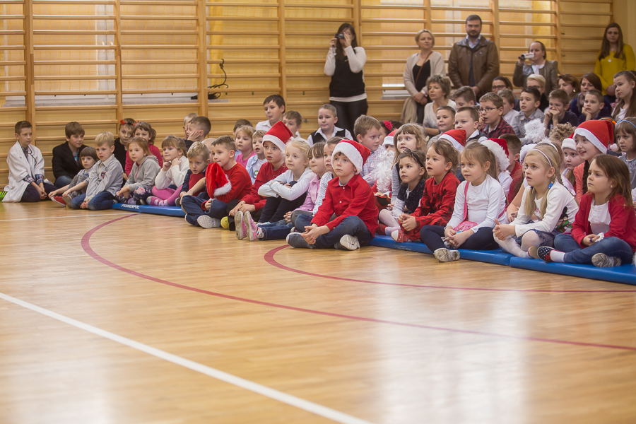 Następnie dzieci z klasy Ib, przygotowane przez wychowawczynię Justynę Studzińską oraz nauczycielkę języka angielskiego Martę Gudaj zaprezentowały przedstawienie w języku polsko-angielskim o tematyce świąteczno-zimowej.