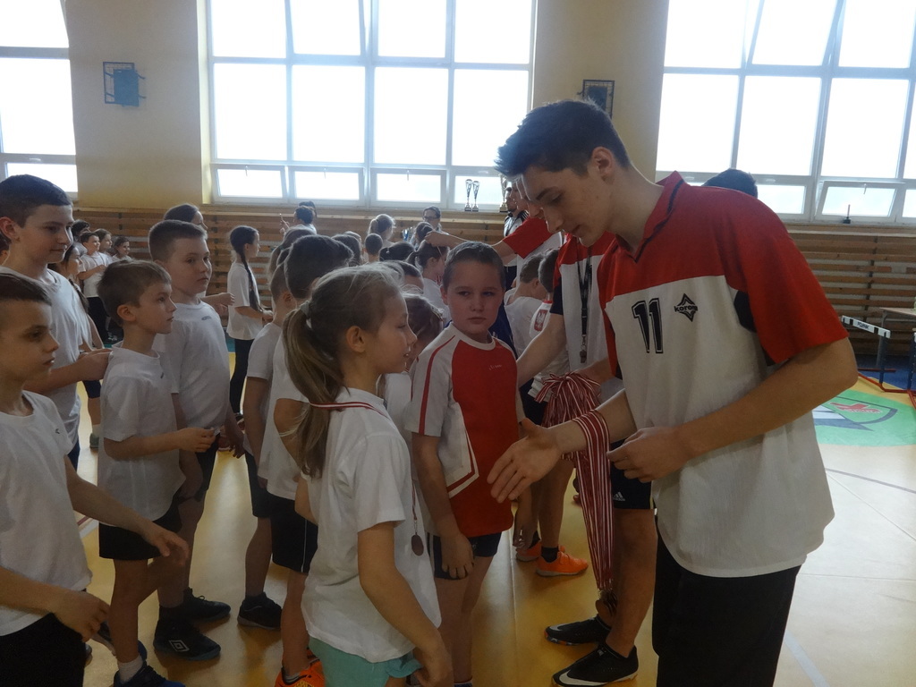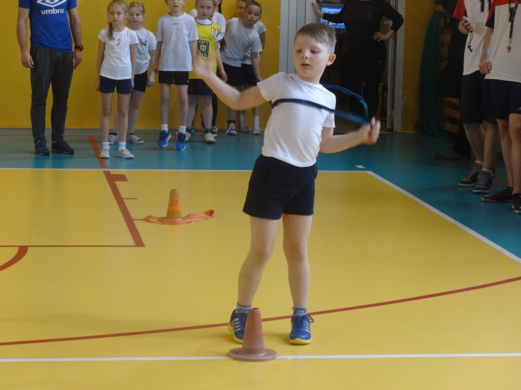 Dzielni zawodnicy oraz zawodniczki dali z siebie wszystko, aby zdobyć jak największą liczbę punktów. Konkurencje, w których sportowcy brali udział, to między innymi: bieg z piłką lekarską, slalom z kółkiem ringo, bieg z przełożeniem szarfy gimnastycznej, toczenie piłki siatkowej, wyścig z rzutem do celu. Po przeliczeniu punktów okazało się, że uczniowie naszej szkoły zdobyli III miejsce. Serdecznie im gratulujemy.