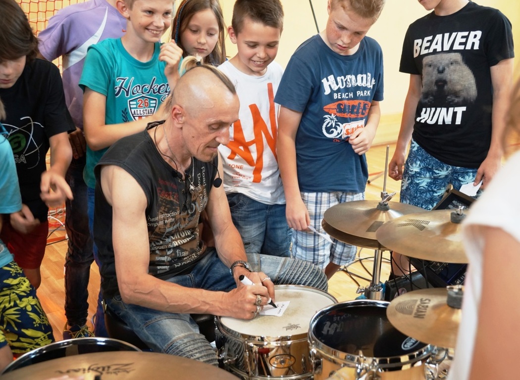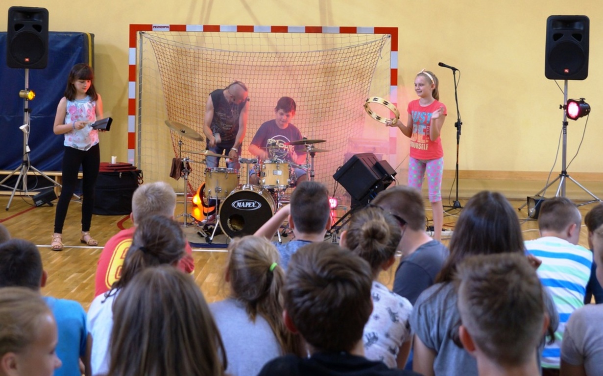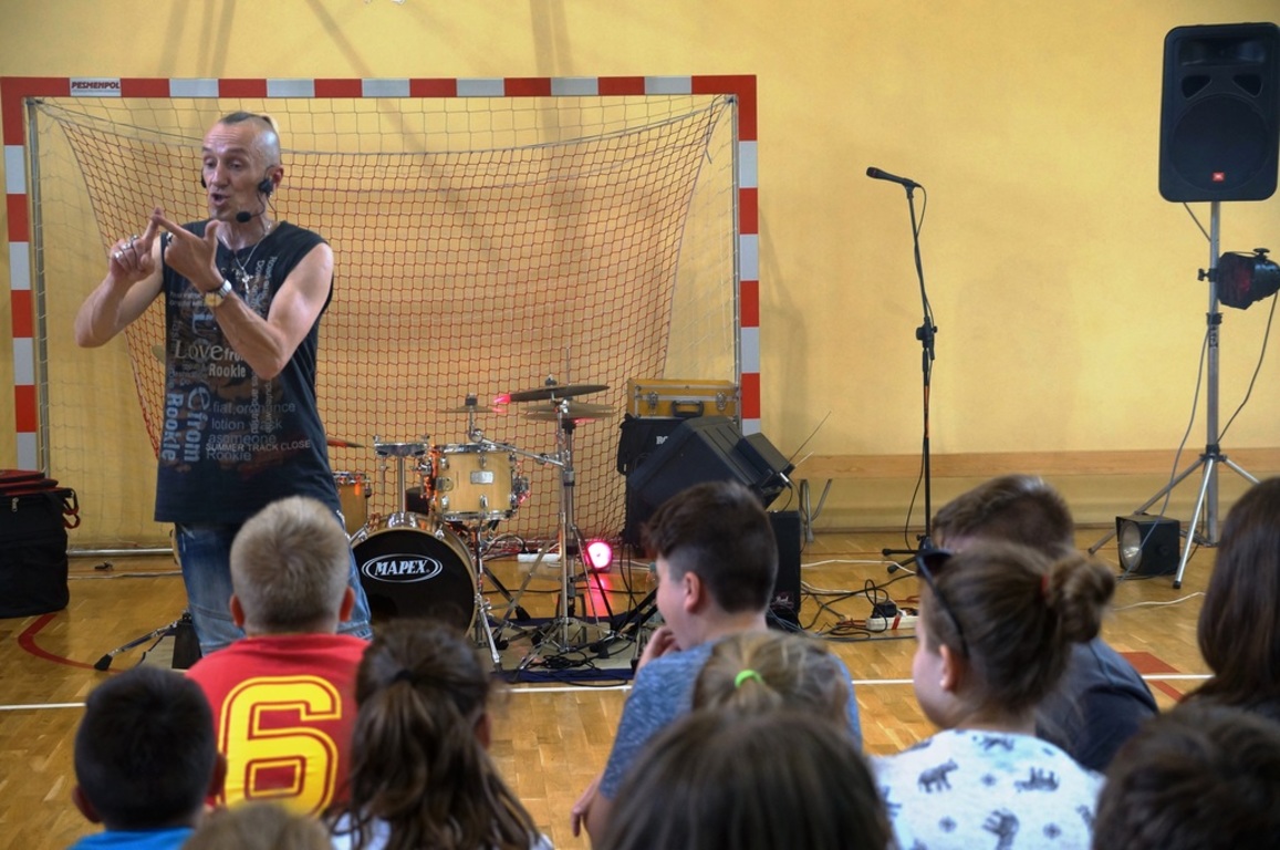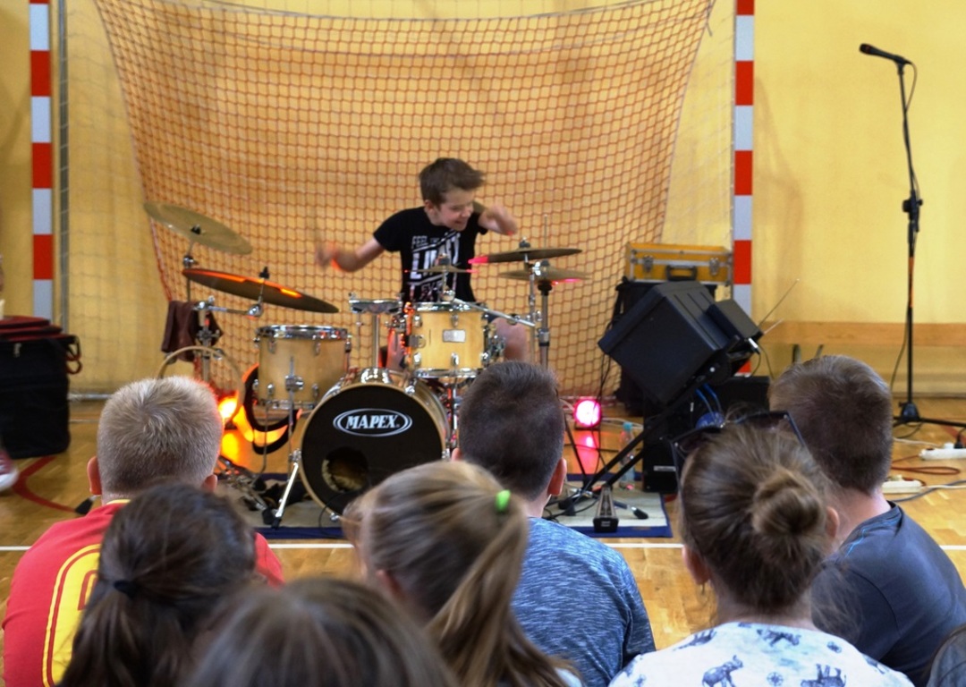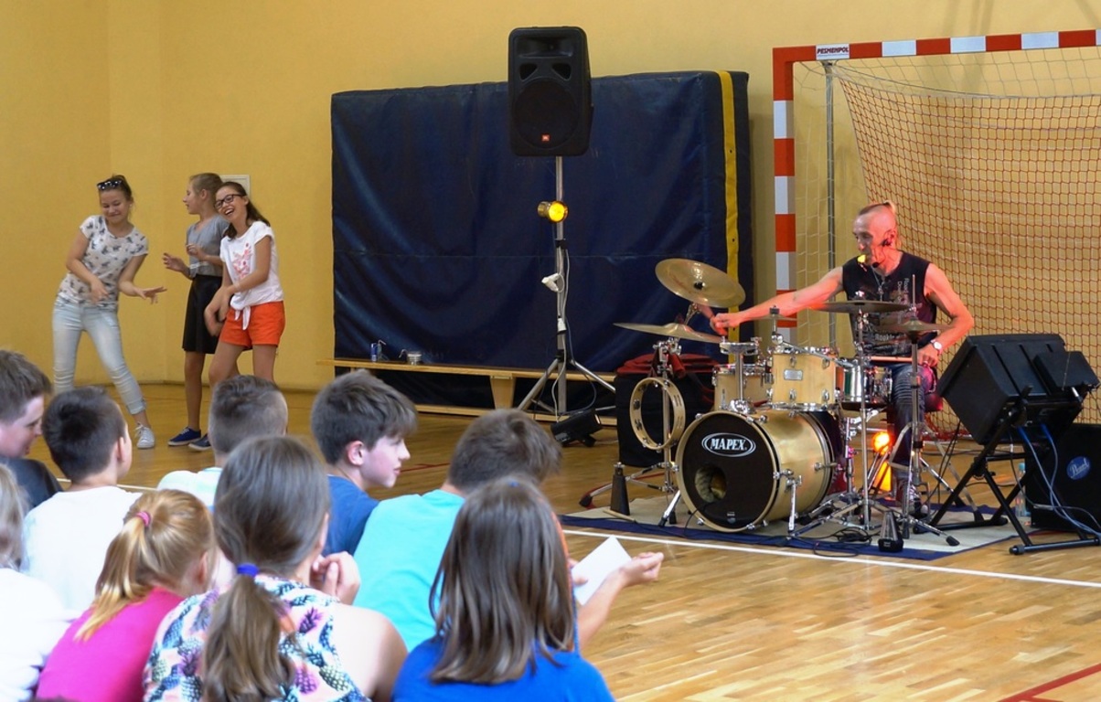 W dniu 31 maja gościł w naszej szkole muzyk Wiesław ,,Blacha” Błażkiewicz. W koncercie profilaktycznym w wykonaniu perkusisty znanego z polskich zespołów rockowych uczestniczyli uczniowie z klas IV-VI.
