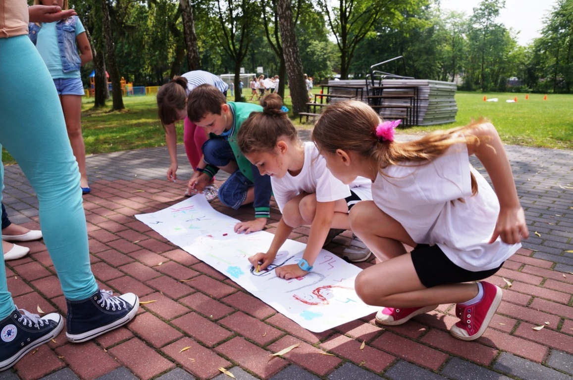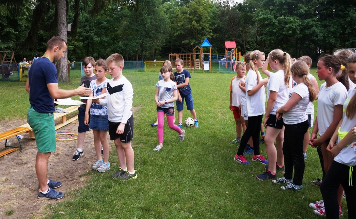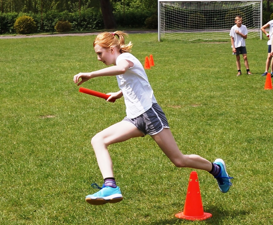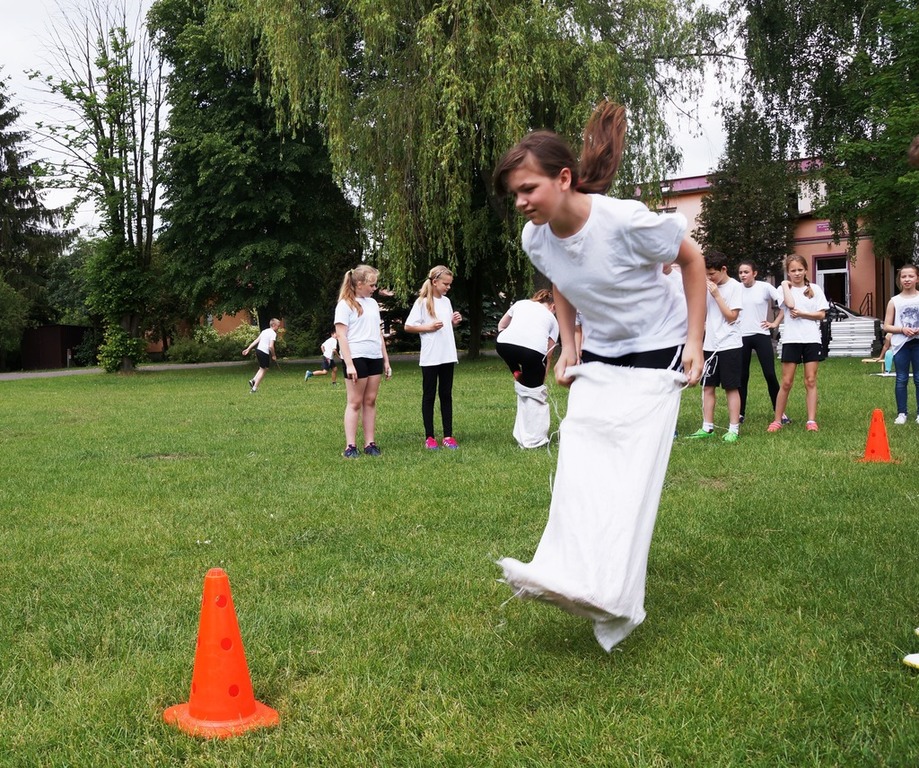 Następnie uczniowie mogli pokazać swoje umiejętności sportowe, uczestnicząc w różnorodnych konkurencjach przygotowanych przez pana Sebastiana Balcerka. Wiele emocji wywołało przeciąganie liny, biegi w workach, rzuty do celu, mecze piłki nożnej. Reprezentacjom klas towarzyszył głośny doping kolegów, którzy pod kierunkiem pani Elżbiety Zielińskiej przygotowali specjalne plakaty dla swoich drużyn. Rywalizacja była niezwykle zacięta, walka rozgrywała się o każdy punkt.