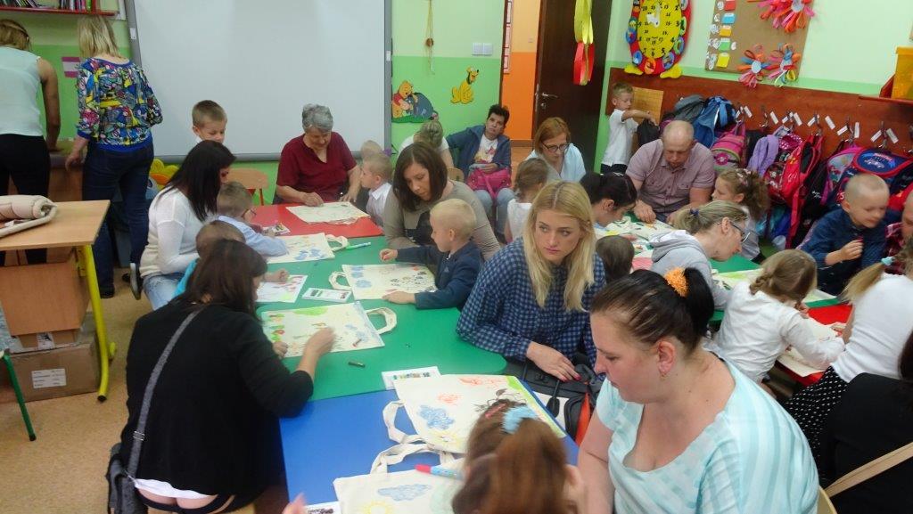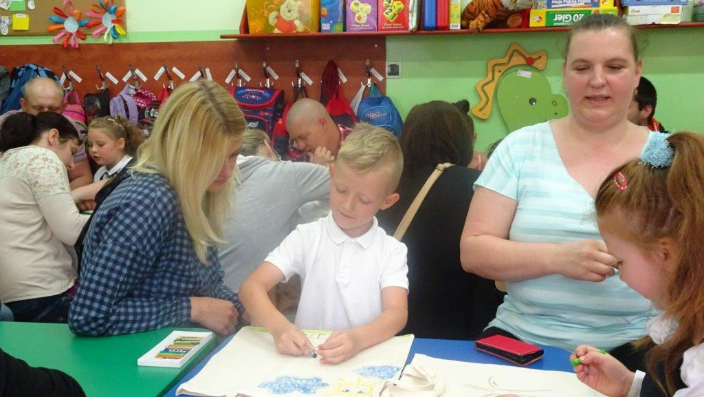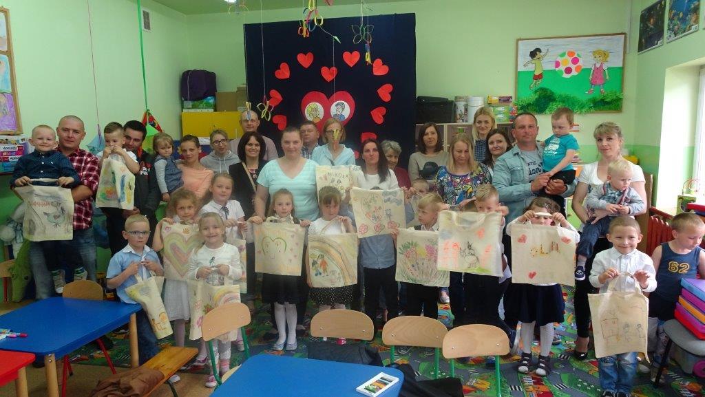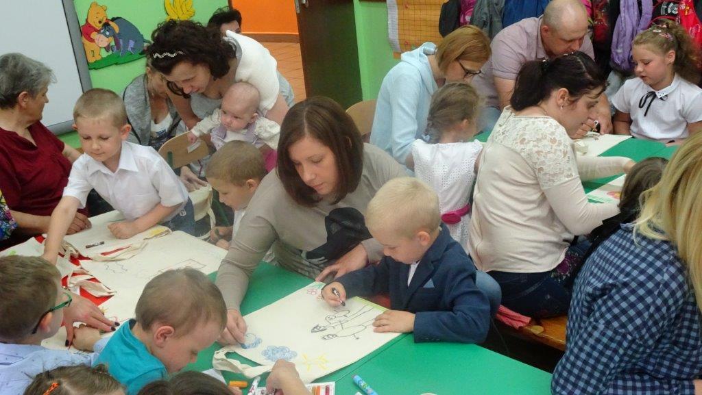 W pierwszej części spotkania przedszkolaki zaprezentowały polsko - angielskie słuchowisko muzyczne dla swoich ukochanych rodziców. Następnie wspólnie z nimi wykonały rodzinne torby na zakupy.