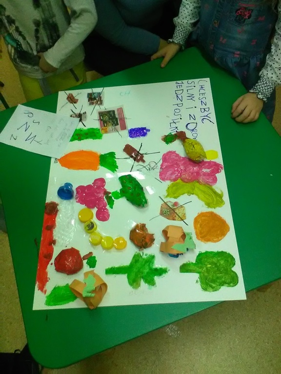 Zwieńczeniem intensywnej pracy było wykonanie plakatu z surowców wtórnych: korków, gazet, opakowań. Najlepsze prace zostaną wysłane na konkurs organizowany przez Bank Ochrony Środowiska.