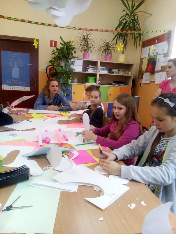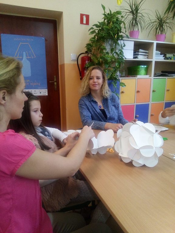 Na zaproszenie do udziału w warsztatach odpowiedziały dwie szkoły: Zespół Szkół Nr 2 w Bratoszewicach i Zespół Szkół Nr 1 ze Strykowa. Zadaniem uczestników spotkania było wykonanie instalacji przestrzennej z papieru oraz ułożenie puzzli 3D. Młodzi artyści wykazali się niezwykłymi zdolnościami manualnymi, a efekty ich działań możemy podziwiać w „Szkolnej Galerii.”