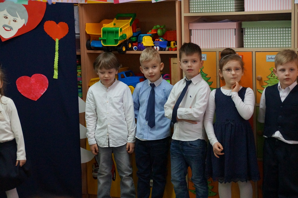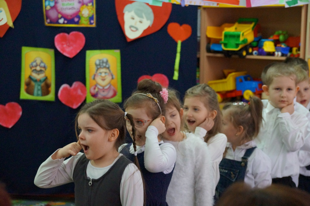 W dniu 8.02.17 r. w Oddziale Przedszkolnym odbyła się uroczystość z okazji Dnia Babci i Dziadka. Dzieci przygotowały dla swoich dziadków piękne przedstawienie, na które składały się: wiersze, piosenki, tańce. Następnie maluchy zaprosiły swoich najbliższych do wspólnej zabawy. Dziadkowie i babcie zgadywali, który to ich wnuczek czy wnuczka, uczestniczyli we wspólnych tańcach i konkursach. Bawili się świetnie wraz ze swoimi wnuczętami. Wszystkim towarzyszyły dobre humory. Maluchy były bardzo szczęśliwe, że mogły się zaprezentować, zaś wzruszeni dziadkowie z dumą przyglądali się swoim pociechom.