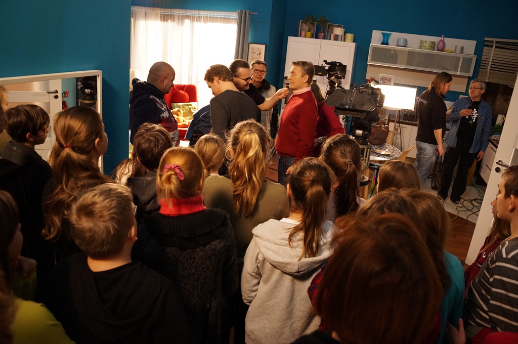 Uczniowie mieli też okazję porozmawiania z odtwórcami ról serialowych m.in. Katarzyną Zielińską, Katarzyną Glinką, Krzysztofem Kiersznowskim oraz Markiem Molakiem. Ogromną niespodzianką dla uczniów była możliwość uczestniczenia w nagrywaniu jednej ze scen serialu.