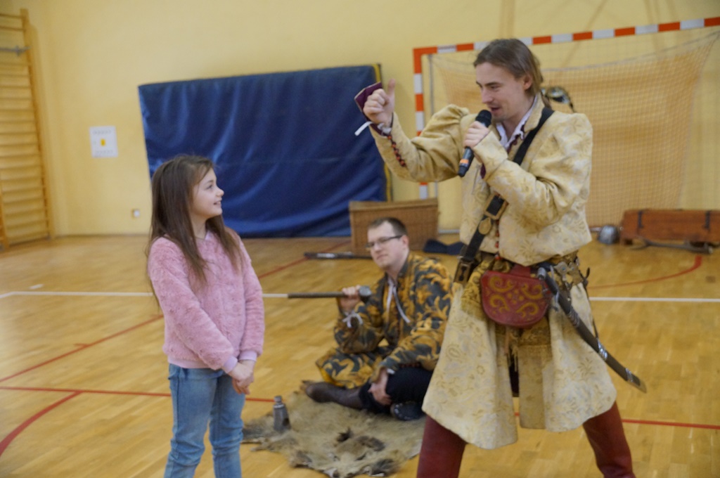 Na zakończenie odbył się krótki konkurs, za udział w którym uczniowie otrzymywali wykonane ręcznie dukaty.