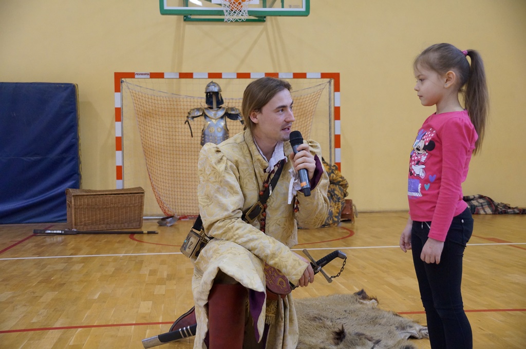 Uczniowie z klas I-VI mogli dowiedzieć się, jak wyglądało życie w czasach szlacheckich; jakiego typu bronią się posługiwano; co jedzono oraz jak się wówczas ubierano. Prowadzący zajęcia, przebrani w stroje szlacheckie, opowiadali także o królach elekcyjnych oraz najważniejszych wydarzeniach z historii Polski związanych z ich panowaniem. Uczniowie aktywnie uczestniczyli w zajęciach, odpowiadając na pytania oraz deklamując krótkie, historyczne rymowanki.