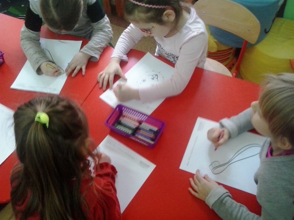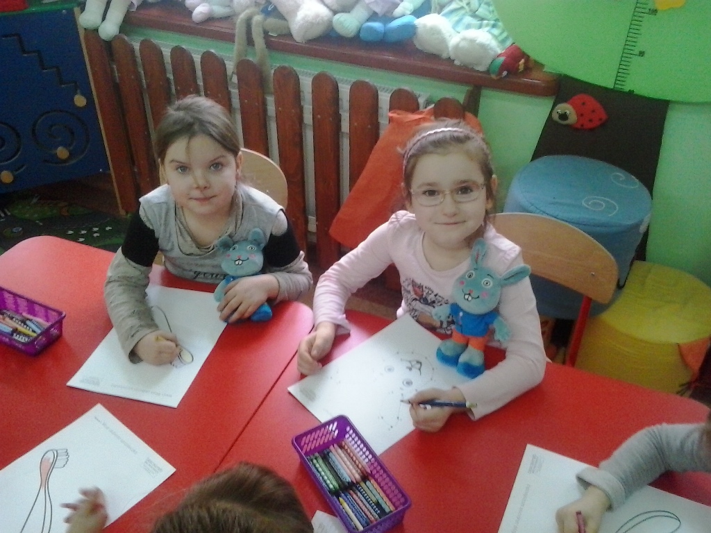 Przedszkolaki dowiedziały się, jak właściwie dbać o zęby. Zastanawiały się, co trzeba jeść, aby mieć je zdrowe oraz przygotowały się do wizyty u stomatologa.