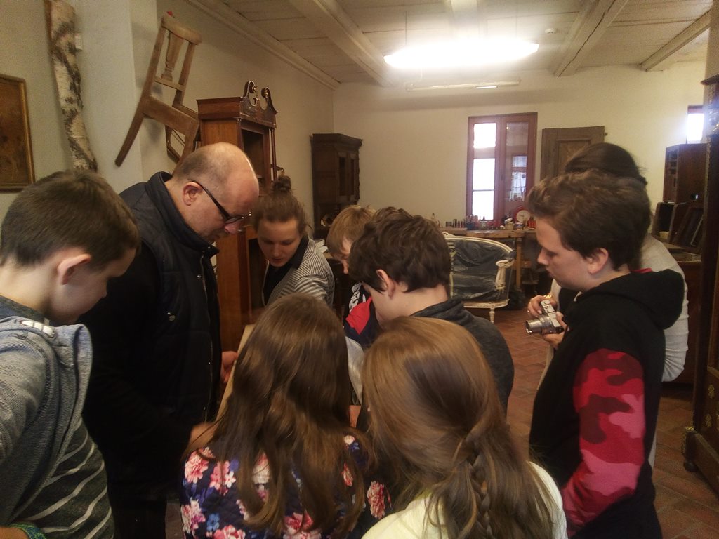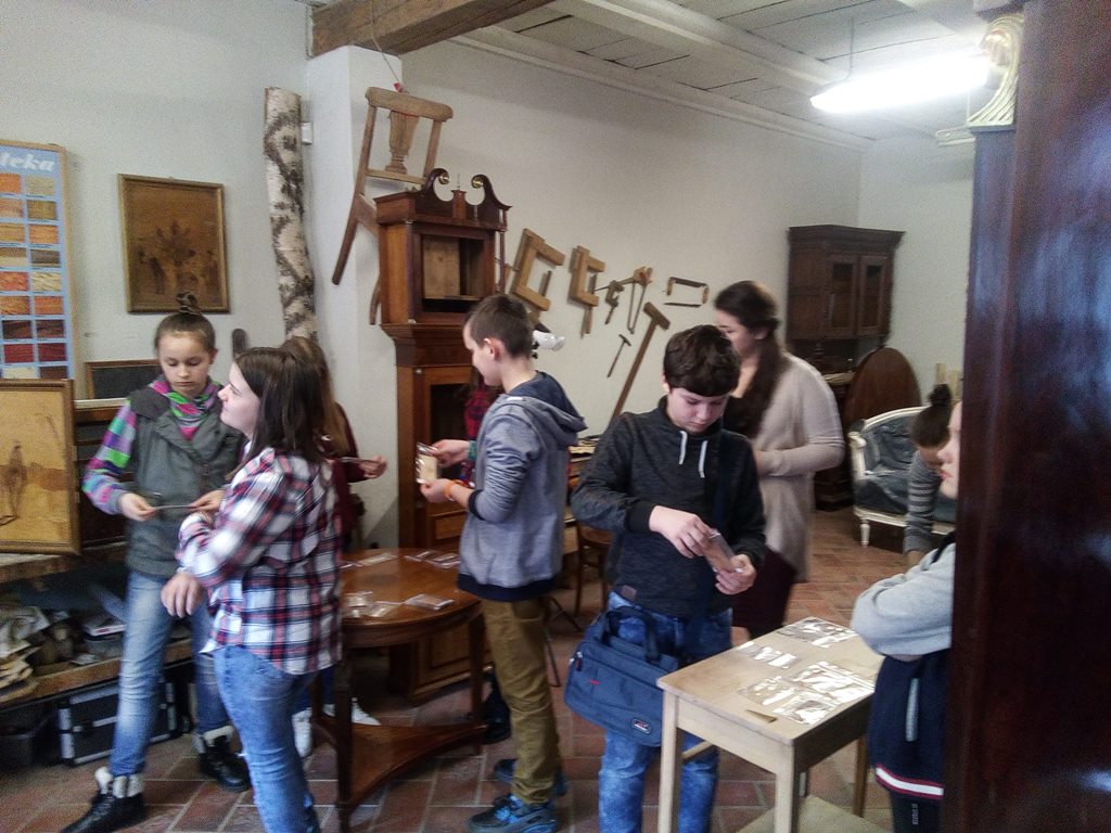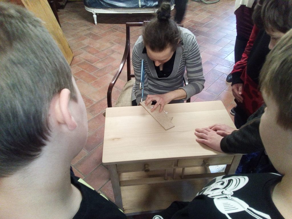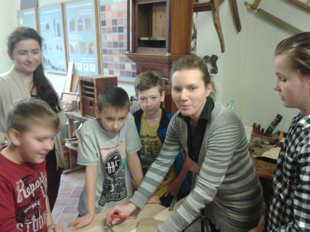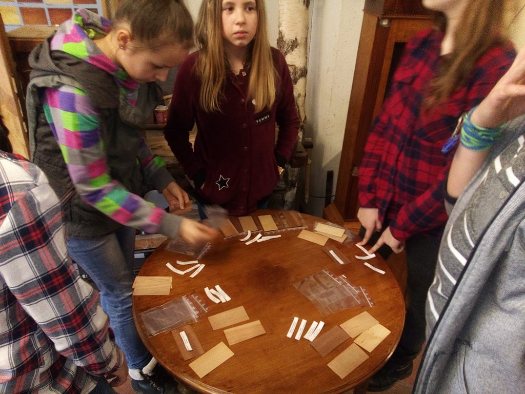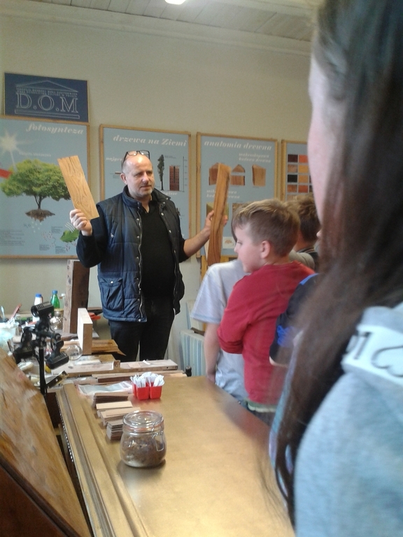 Podczas spotkania w Domu Tkaczy uczniowie dowiedzieli się, jakie cechy posiada to naturalne tworzywo, ile jest jego gatunków oraz do czego wykorzystuje się je w gospodarce. Poznali także ciekawostki związane z tym materiałem oraz procesami fornirowania i intarsji – procesów wykorzystywanych w meblarstwie. Mogli także zapoznać się z ksyloteką zawierającą odmiany drewna wykorzystywane w Polsce oraz samodzielnie przyporządkowywać nazwy drewna do jego próbek.