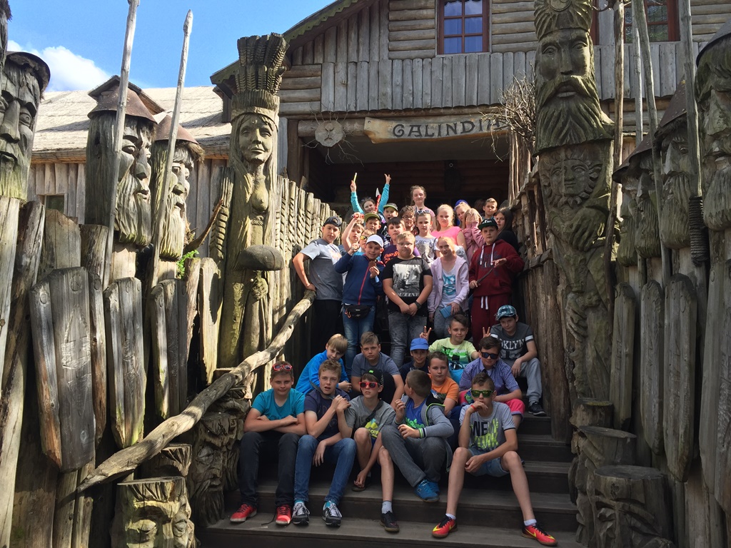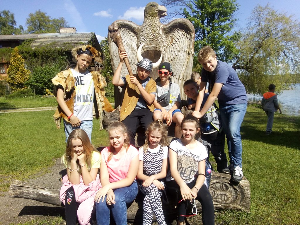 W dniach 22 - 24 maja uczniowie z klas IV-VI wraz z wychowawcami udali się na wycieczkę na Mazury. Czekało na nich wiele atrakcji. Zwiedzili Galindię, czyli Mazurski Eden, w którym zapoznali się z życiem historycznego plemienia Galindów żyjącego na półwyspie u ujścia rzeki Krytyni. Zachwyt wszystkich wzbudziły przepiękne krajobrazy oraz niezwykłe rzeźby znajdujące się na terenie parku.