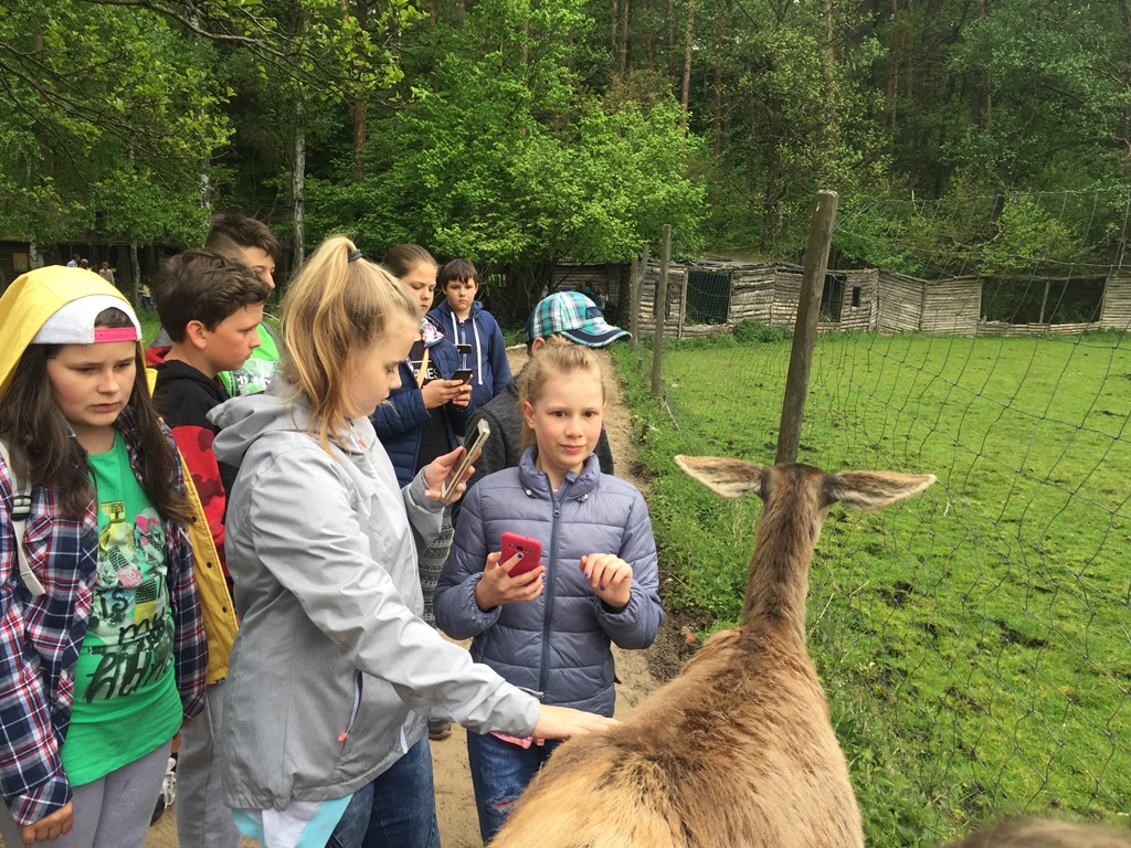 Na koniec czekała na wszystkich jeszcze jedna niespodzianka - zwiedzanie Parku Dzikich Zwierząt w Kadzidłowie. W tym niezwykłym miejscu dzieci mogły z bliska przyjrzeć się wielu gatunkom zwierząt i ptaków żyjących w Polsce. Niezapomnianym przeżyciem była dla wielu możliwość pogłaskania małej sarny czy daniela, wykonanie fotografii pięknym czaplom czy pawiom oraz ujrzenie wilków czy stada jeleni.