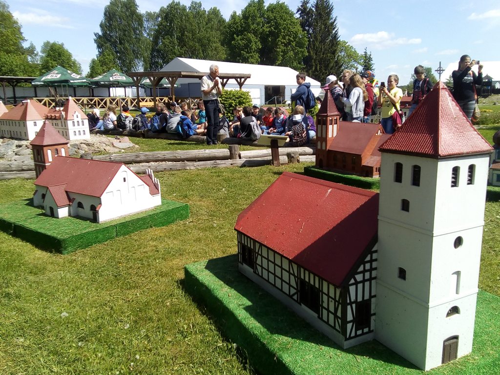 Młodzi turyści podziwiali także miniatury budowli z terenu Warmii i Mazur zgromadzone w Mazurskim Parku Atrakcji ,,Mazurolandia” . Poznali także życie rdzennych mieszkańców tych okolic: ich domy narzędzia, stroje zgromadzone w skansenie, w którym znajdowały się XIX-wieczne chaty.