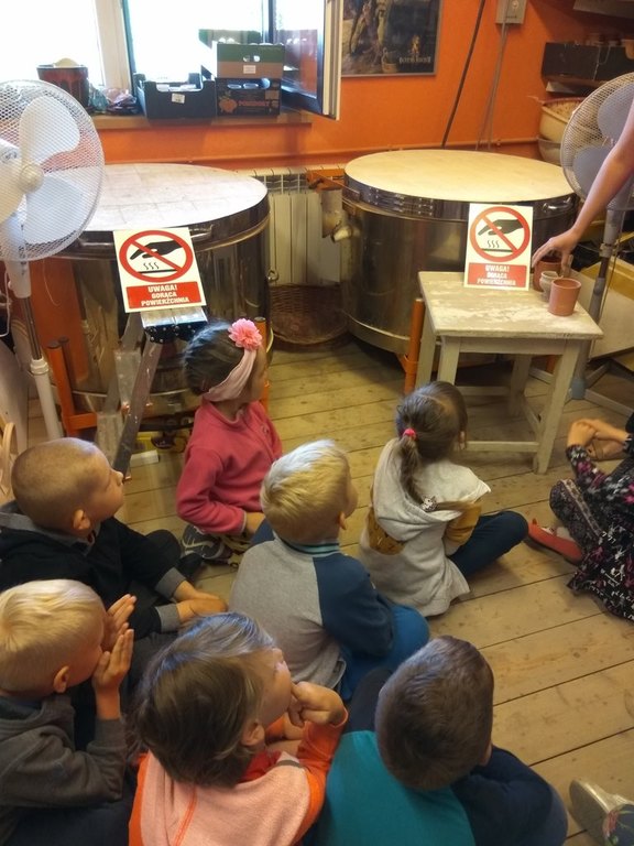 Dzieci zwiedziły warsztat rzemieślniczy, w którym można było podpatrzeć pracę garncarza, zobaczyć etapy powstawania naczyń glinianych oraz wysłuchać legend i opowiadań związanych z Bolimowem.