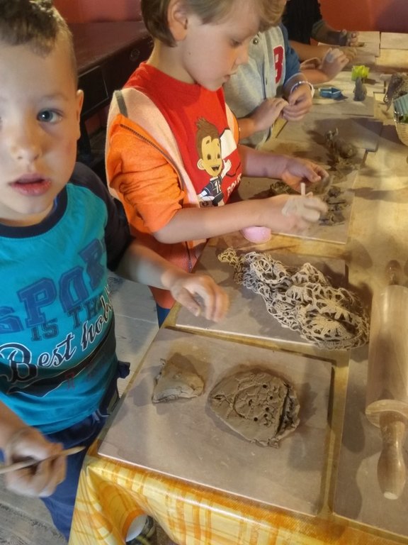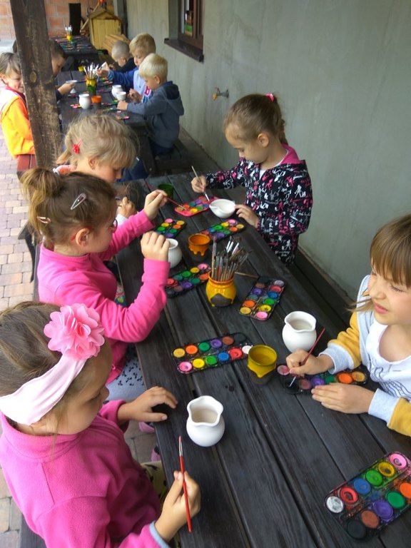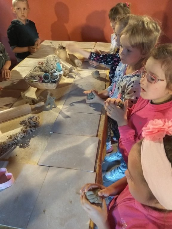 Oprócz tego każdy mógł spróbować swoich sił na kole garncarskim oraz ręcznie ulepić naczynie z gliny. Po wyschnięciu swoje prace przedszkolaki pomalowały farbami akwarelowymi.