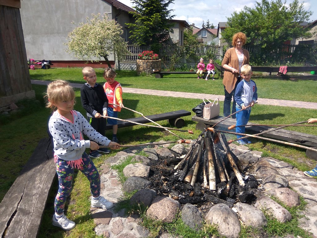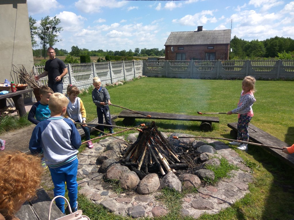 Niezwykłą atrakcją kończącą warsztaty było pieczenie kiełbasek na ognisku i wspólny, smaczny posiłek.
