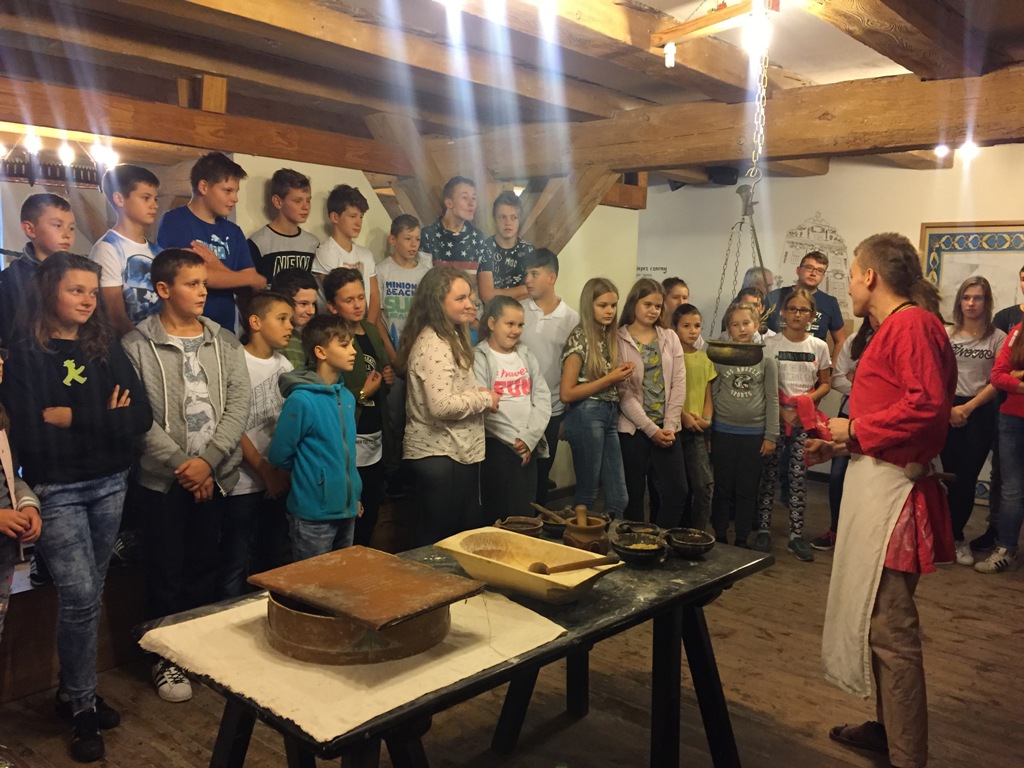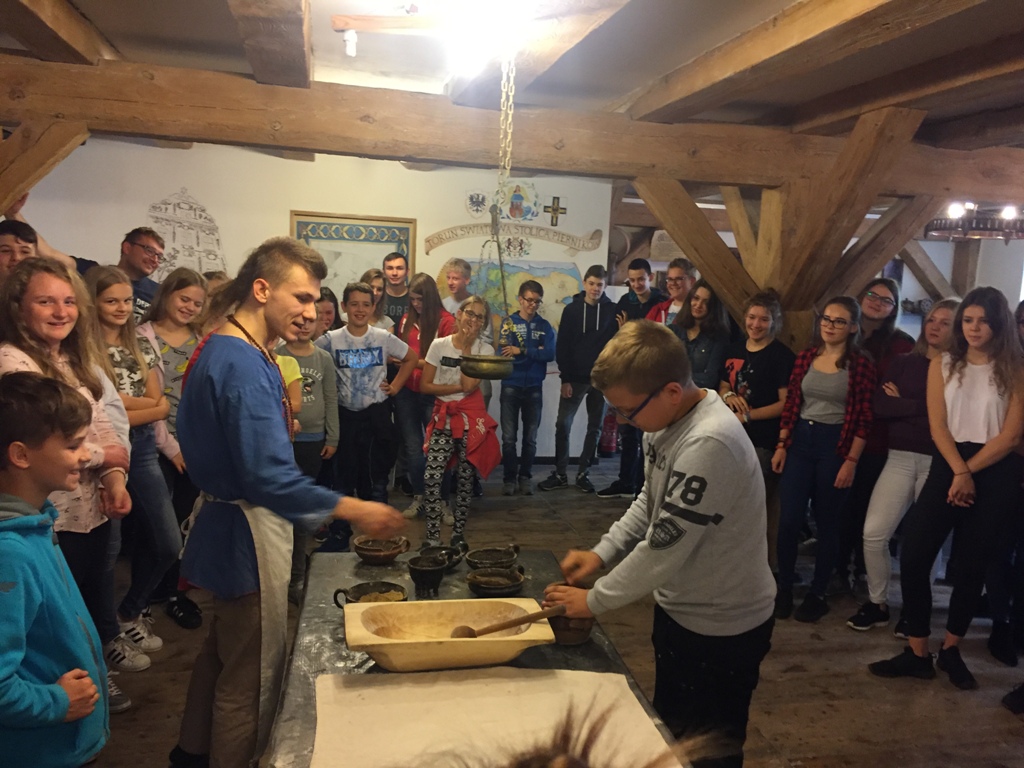 Pierwszym punktem programu była wizyta w Muzeum Piernika, w czasie której uczniowie poznali tajniki wytwarzania ciasteczek oraz mieli okazję samodzielnie je wykonać. Gospodarzem pokazu był słynny mistrz piernikarski Bartłomiej, któremu pomagała wiedźma Korzenna i czeladnicy. Można też było zobaczyć, jak te niezwykłe ciasteczka były przygotowywane w średniowieczu oraz w wieku XIX. Zajęciom pod opieką mistrza cukierniczego towarzyszyła dobra zabawa, a wszyscy otrzymali samodzielnie wykonane pierniki oraz certyfikat uczestnictwa w warsztatach.