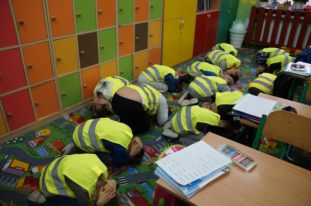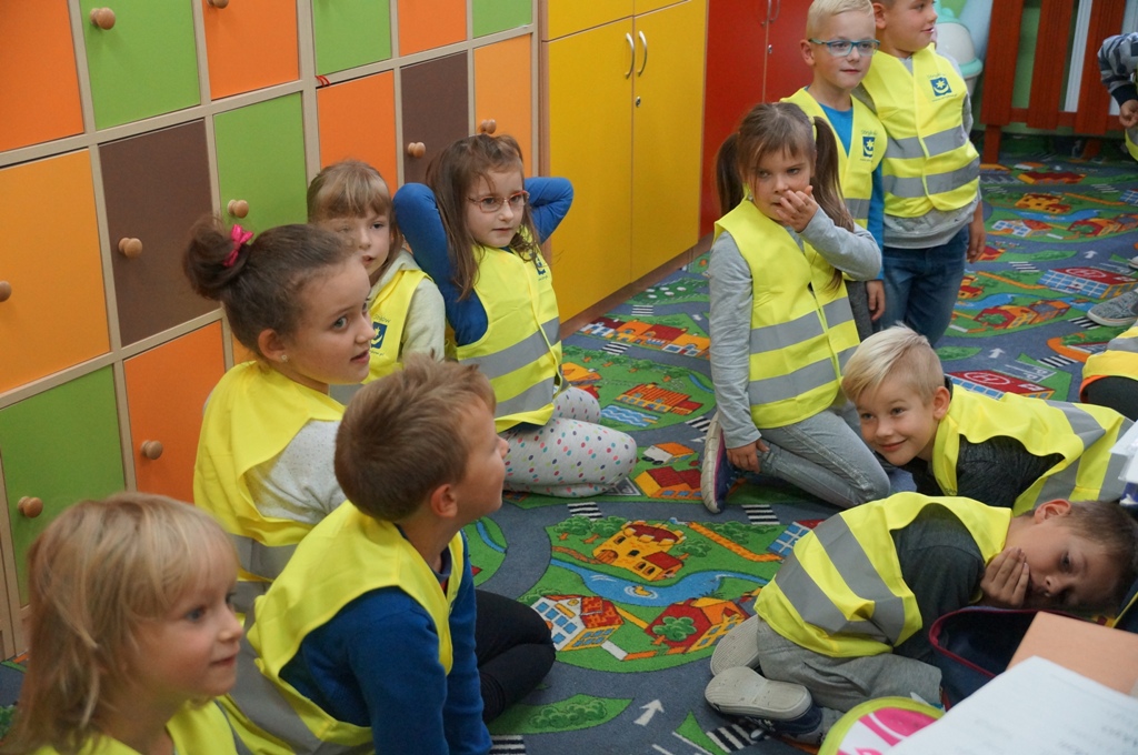 Bezpieczeństwo dzieci jest niezwykle ważną sprawą, dlatego też zawsze na początku roku szkolnego wszyscy nauczyciele z naszej szkoły przeprowadzają z uczniami pogadanki dotyczące bezpieczeństwa w szkole i w drodze do domu. W ramach edukacji związanej z bezpieczeństwem 11 października uczniowie klasy pierwszej uczestniczyli w spotkaniu z policjantem z Komisariatu Policji w Strykowie młodszym aspirantem - Dawidem Błażejewskim. Pierwszoklasiści usłyszeli od pana policjanta niezwykle cenne uwagi związane z bezpieczeństwem. Omówili zasady właściwego poruszania się po drodze oraz bezpieczeństwa w szkole. Podczas spotkania policjant przestrzegł dzieci, aby były ostrożne również w kontaktach z nieznajomymi. Podkreślił, jak ważną rolę pełnią odblaski, które uczniowie powinni posiadać. Dzieci nauczyły się także, w jaki sposób należy zachowywać się, gdy zaatakuje nas pies.