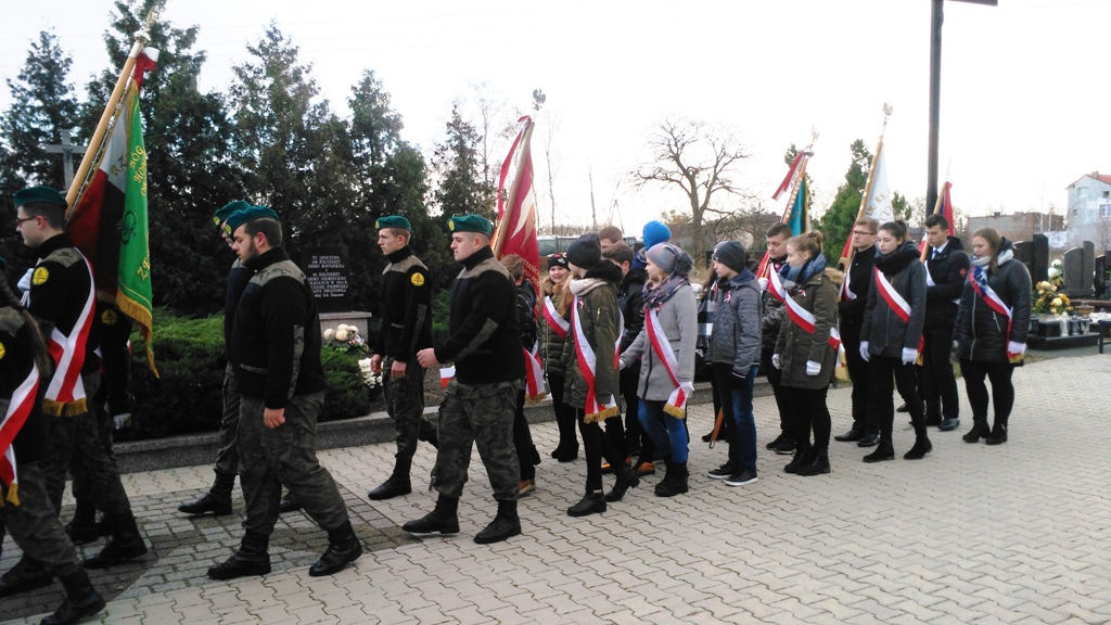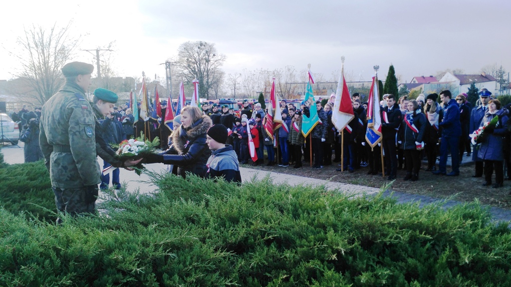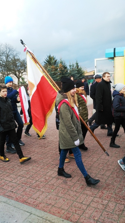 Szkołę godnie reprezentowali: pani dyrektor Małgorzata Wielgus, uczniowie - Aleksandra Kapuścińska kl. VII, Klaudia Kuna kl. VIA, Sara Banasiak kl. VIA, Martyna Witak kl. VIA, Maciej Polinceusz kl. VII, Dawid Koralewski kl. VII, Wiktor Staniszewski kl. VIA, Filip Lefik kl. VIA, Gabriel Szabała kl. VIB i Adrian Sosnowski kl. VIB pod opieką nauczycielki Jolanty Lis oraz pan Sławomir Jankowski. W uroczystości uczestniczyli przedstawiciele władz Gminy Stryków, radni, księża, przedstawiciele gminnych szkół i placówek oświatowych, lokalnych instytucji, organizacji, związków. Przybyli też mieszkańcy miasta i sąsiednich miejscowości, a wśród nich rodzice i dziadkowie naszych uczniów. Wysłuchano okolicznościowych wystąpień, koncertu pieśni patriotycznych, złożono wiązanki kwiatów pod pomnikami żołnierzy i powstańców.