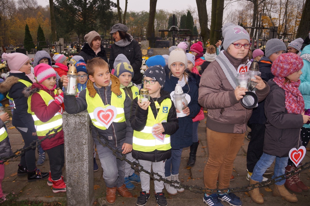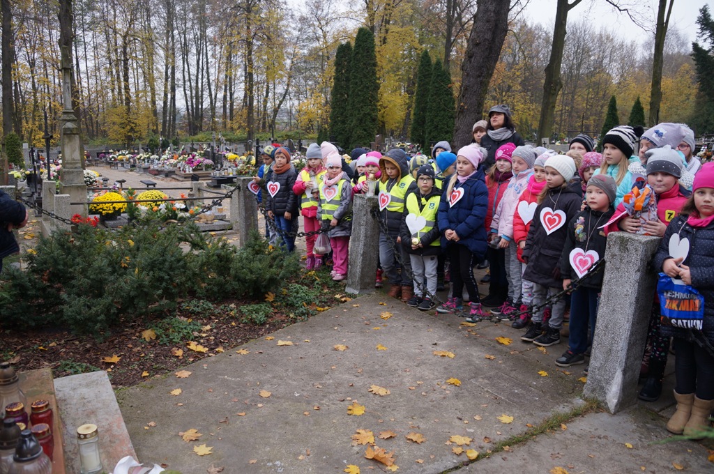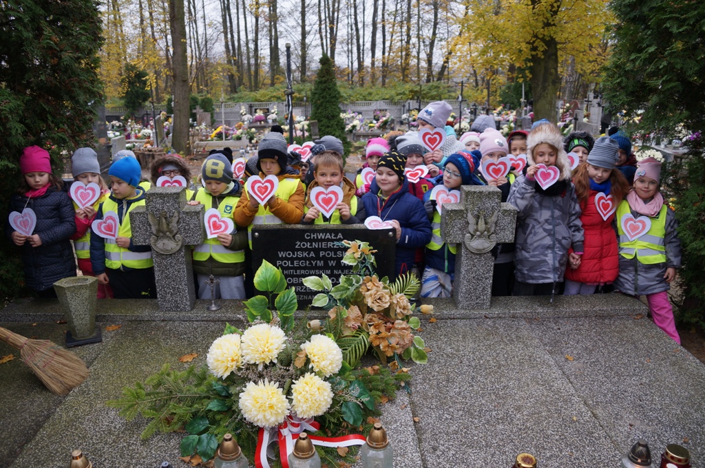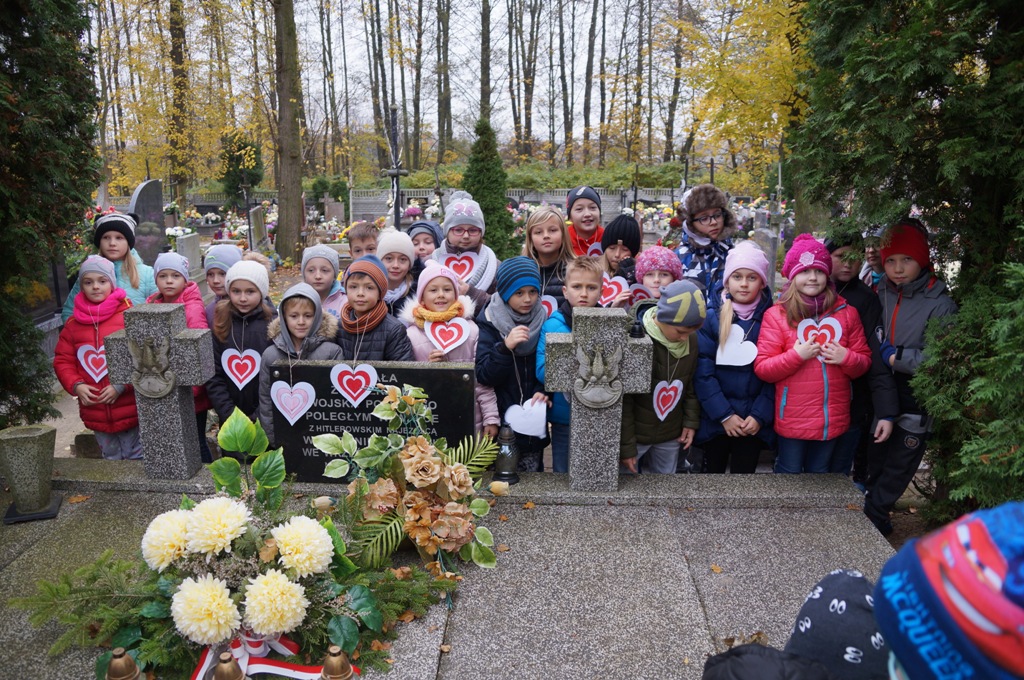9 listopada 2017 roku uczniowie z edukacji wczesnoszkolnej wraz z wychowawczyniami obchodzili Narodowe Święto Niepodległości. W tym dniu w klasach odbyły się pogadanki podkreślające powagę i rangę ważności tego święta. Dzieci wykonały przepiękne biało-czerwone serca symbolizujące umiłowanie naszej kochanej ojczyzny. W każdej z klas słychać było również niezwykle wzruszający śpiew pieśni patriotycznych w wykonaniu uczniów. Końcowym punktem obchodów tego ważnego dla Polaków święta był przemarsz na cmentarz rzymsko-katolicki, w którym uczestniczyły wszystkie dzieci z klas I-III pod opieką nauczycielek. Uczniowie z sercami w barwach naszego kraju, bardzo dumni, że są Polakami dotarli do mogiły powstańców i zapalili znicze. W ten sposób uczcili pamięć żołnierzy poległych w walce o naszą wolność.