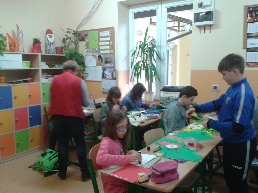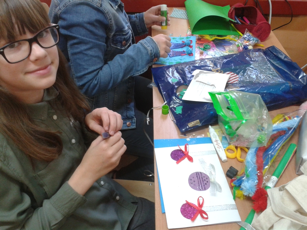 Tradycją klasy VI b stały się grudniowe warsztaty plastyczne. W tym roku poprowadziła je babcia Michała Krzeszewskiego – pani Ewa. Uczniowie pod jej okiem robili kartki świąteczne. Powstały prawdziwe cuda, które na pewno sprawią wiele radości adresatom, do których zostaną wysłane.