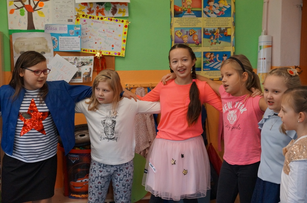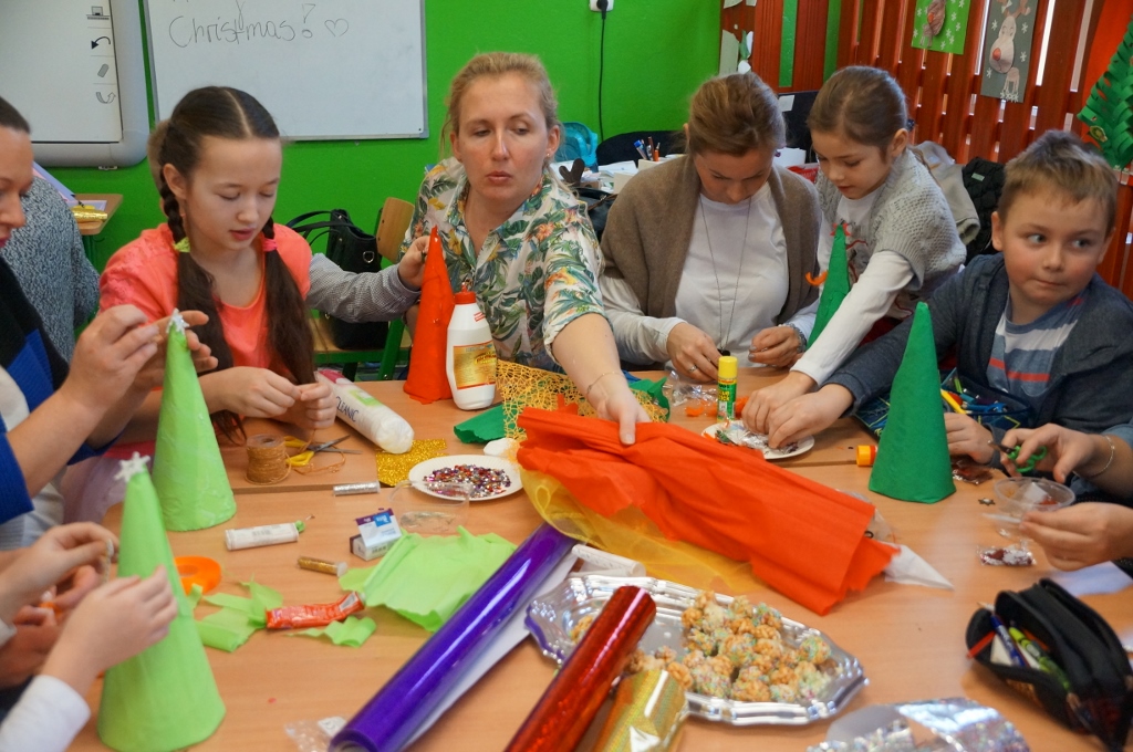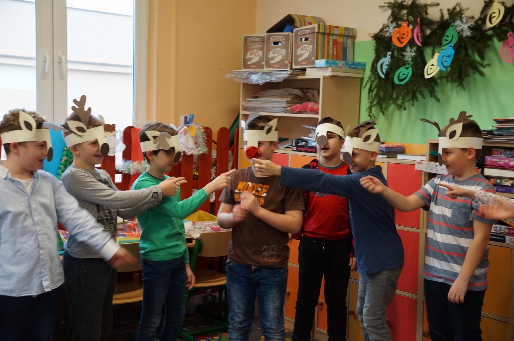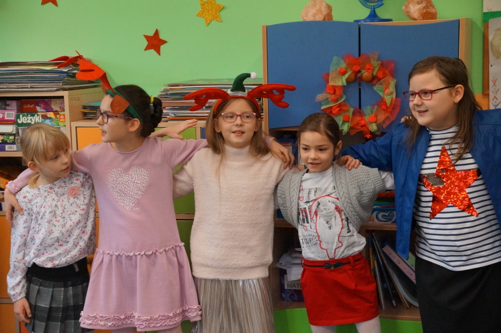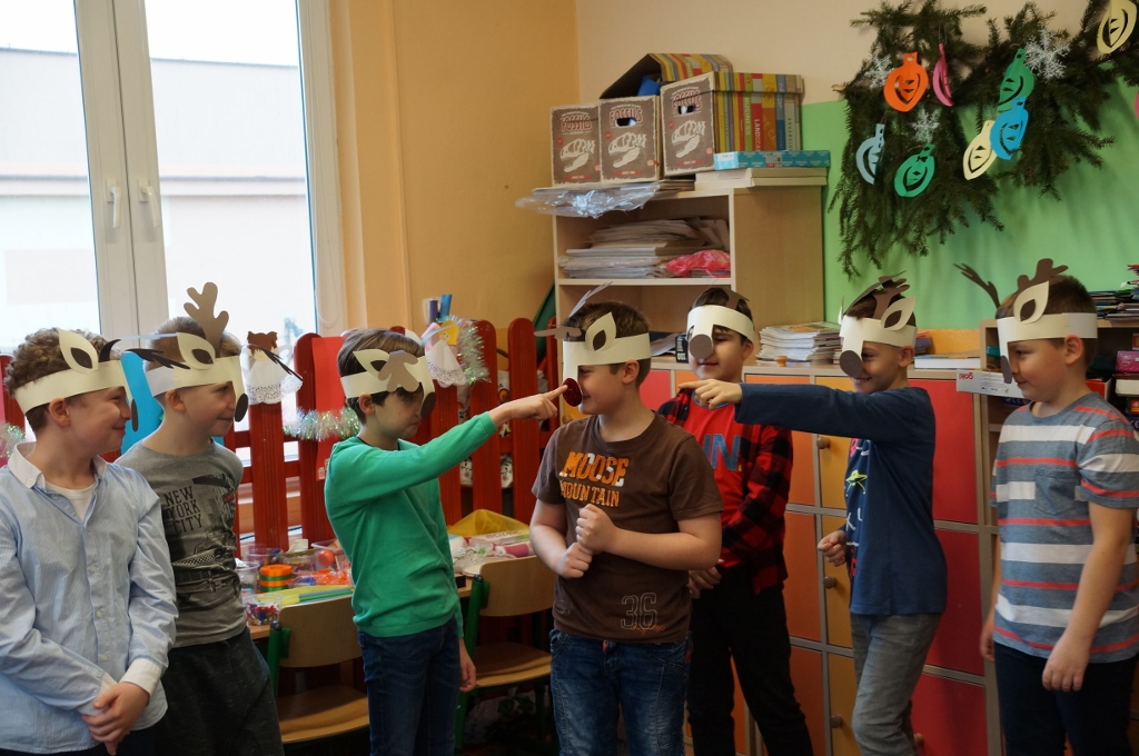 W dniu 20 grudnia 2017 roku uczniowie kl. III b zaprosili do szkoły swoich najbliższych. Najpierw odbył się piękny występ dzieci pt. „Świąteczne muzykowanie”. Uczniowie zaprezentowali bożonarodzeniowe tradycje. Nie zabrakło także wesołego śpiewu oraz muzykowania dzieci. Uczniowie zaśpiewali polskie kolędy oraz piosenki świąteczne, również w języku angielskim. Natomiast Julia Nowak umiliła obecnym czas grą na flecie poprzecznym. Przepięknie zagrała na instrumencie kolędę pt. „O Gwiazdo Betlejemska”. Końcowym punktem spotkania były warsztaty plastyczne, w których uczestniczyły dzieci oraz ich rodzice. Wspólnie wykonywano różnymi technikami, z wykorzystaniem różnych materiałów, ciekawe i barwne choinki, które zapewne będą stanowiły fantastyczną ozdobę domów podczas świąt.