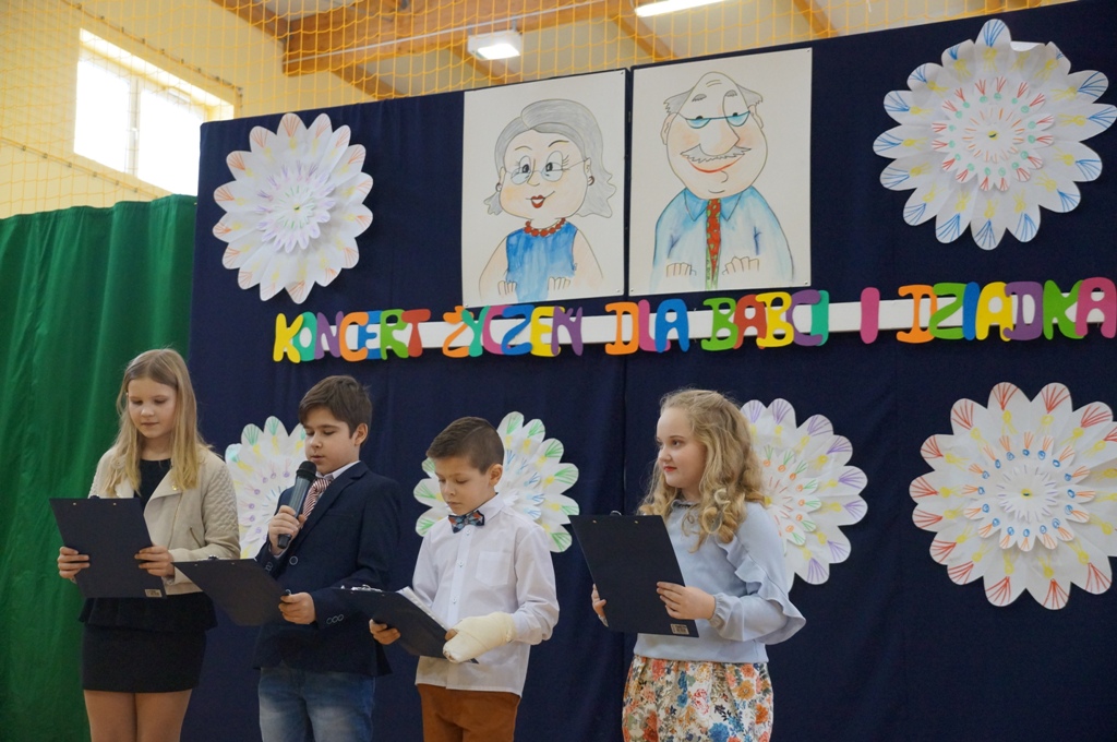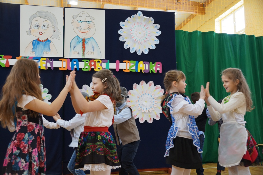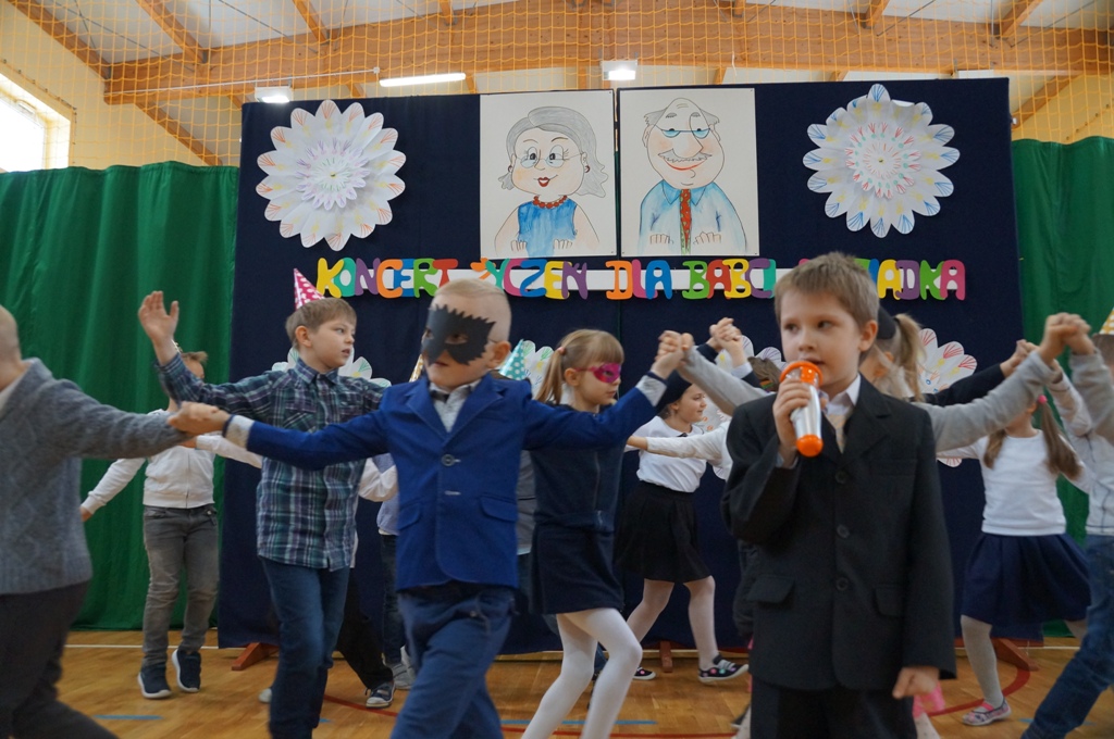 W poniedziałek – 22 stycznia 2018 - roku babcie i dziadkowie uczniów z kl. I-III celebrowali wspólnie z wnukami swoje święto. Jak przystało na karnawałowy dzień, dzieci zaprezentowały dziadkom przeboje z ich młodzieńczych lat. Zabrzmiały melodie znanych piosenek Maryli Rodowicz, Jerzego Połomskiego, Ireny Jarockiej i Czerwonych Gitar. Dzieci zatańczyły też wspaniałe tańce karnawałowe. Nie zabrakło oczywiście serdecznych życzeń, upominków, wspólnego ciasteczka i chwil wzruszenia.