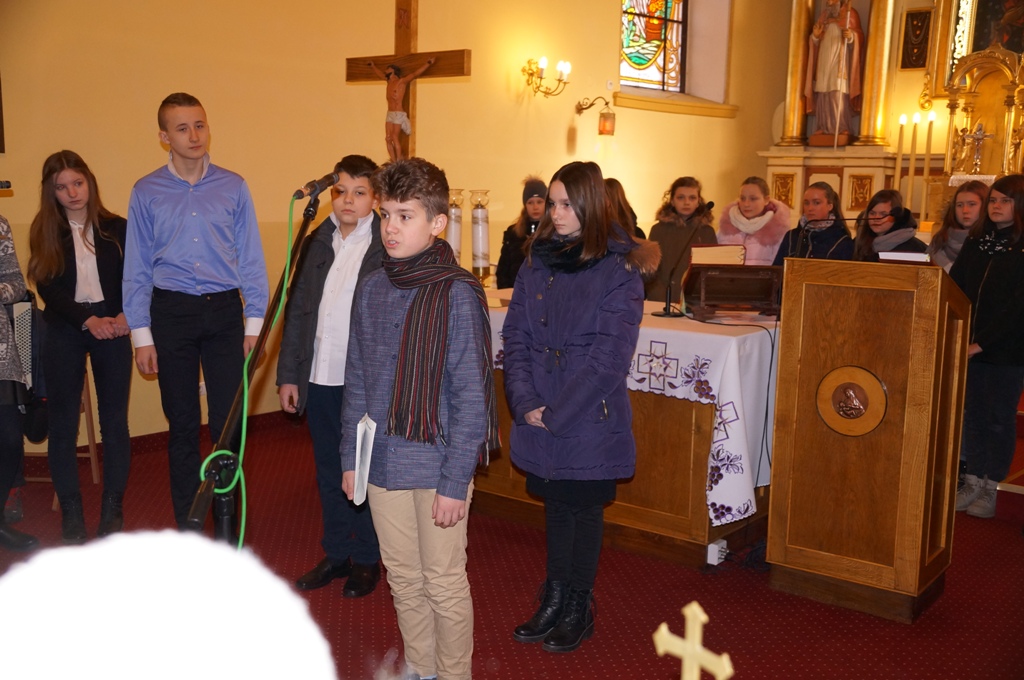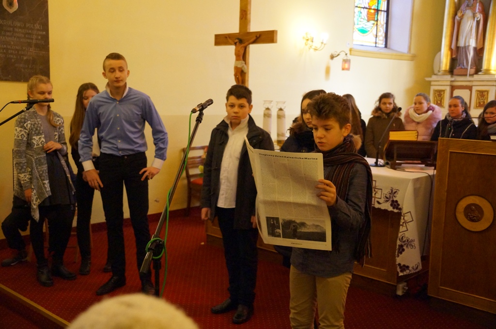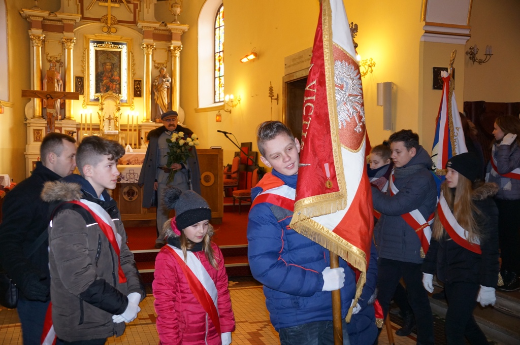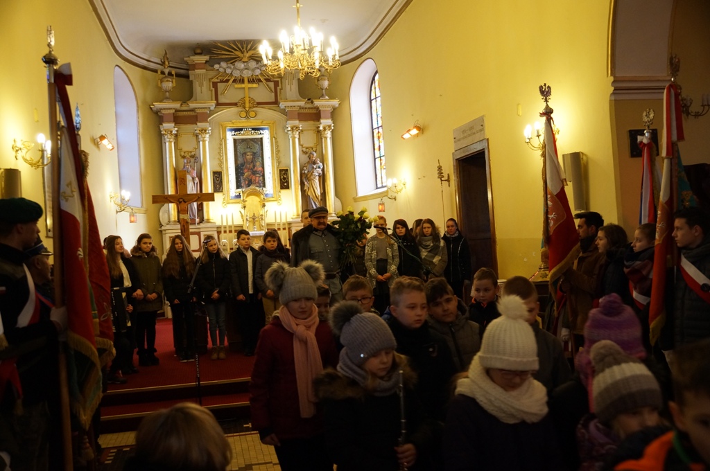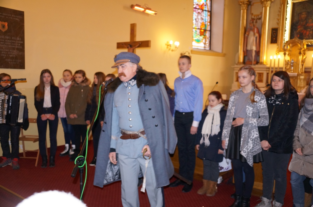 Zwieńczeniem uroczystości w kościele było przedstawienie, w którym wzięli udział uczniowie z naszej szkoły oraz Pan Krzysztof Kaczmarek - wcielający się w postać Józefa Piłsudskiego i aktorka - Pani Agata Kaczmarek – grająca rolę nauczycielki. Wspominano w nim czasy zaborów, powstania styczniowego oraz trudną drogę do odzyskania niepodległości. W czasie spektaklu szkolny chór - pod kierunkiem Pani Agaty Norek - wykonał pieśni patriotyczne.