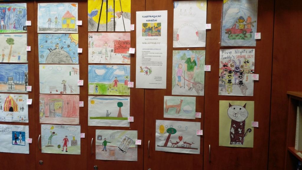 W Szkole Podstawowej w Dobrej rozstrzygnięty został konkurs biblioteczny „ILUSTRACJA DO KSIĄŻKI”. Zadanie konkursowe polegało na wykonaniu ilustracji dowolną techniką do wybranej przez siebie książki. Prace złożyli uczniowie klas I - V, a każda z nich była przygotowana ładnie, starannie, interesująco. Wyselekcjonowane ilustracje zostały wystawione w bibliotece szkolnej, gdzie uczniowie i pracownicy szkoły głosowali na najlepszą z nich.
