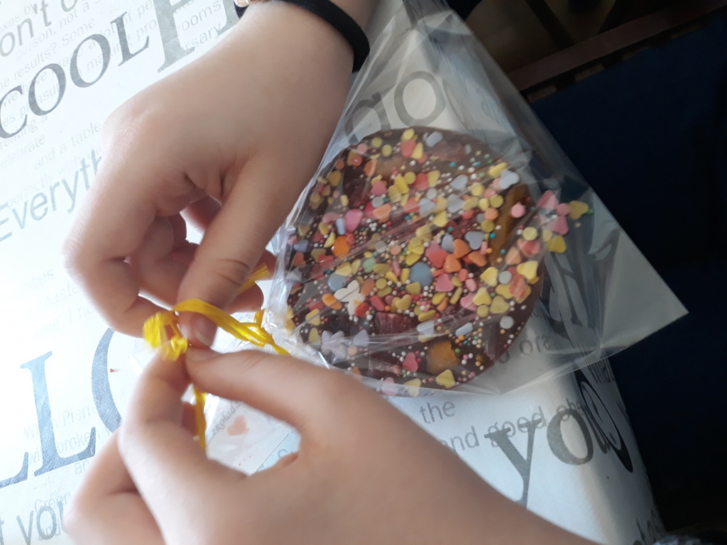 Wszyscy uznali, że były to najsłodsze zajęcia, w jakich uczestniczyli i z żalem opuszczali niezwykłe miejsce pachnące czekoladą. Na pocieszenie każdemu została słodka tabliczka.