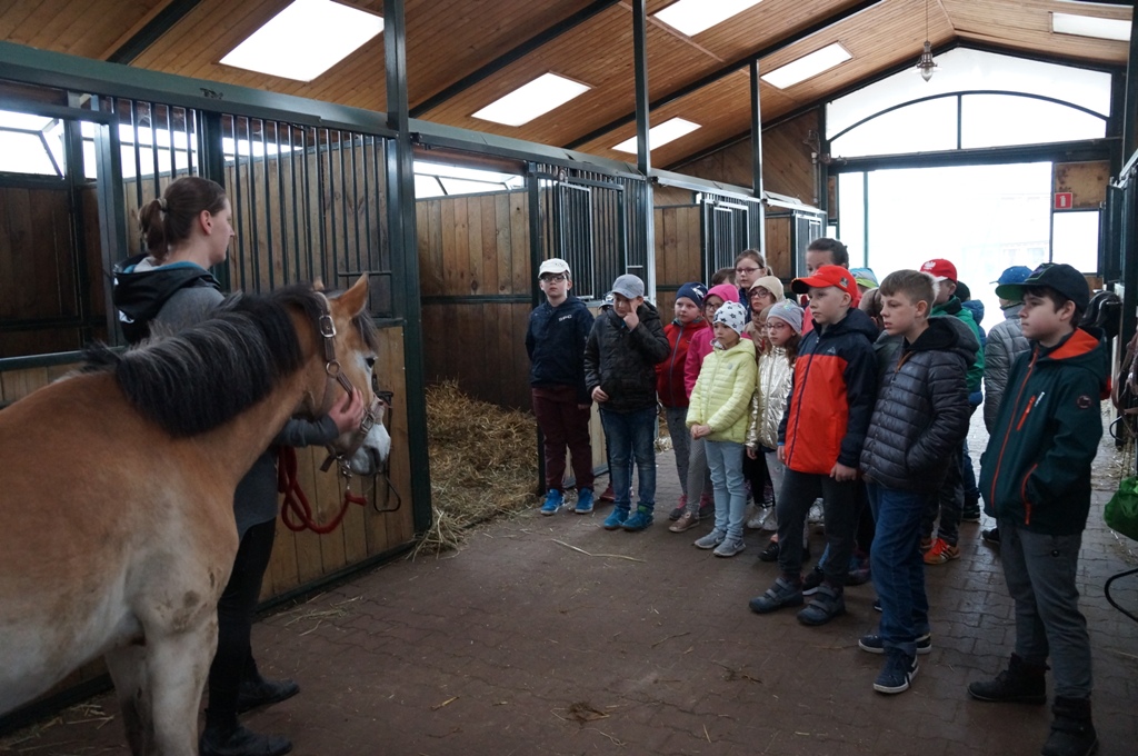 W trakcie pobytu w stadninie koni, dzieci wzięły udział w fantastycznych zajęciach edukacyjno-przyrodniczych, dzięki którym dowiedziały się, jak wygląda praca w stadninie koni oraz w jakich warunkach są hodowane te piękne zwierzęta.