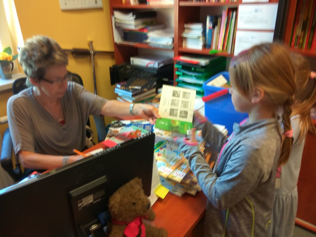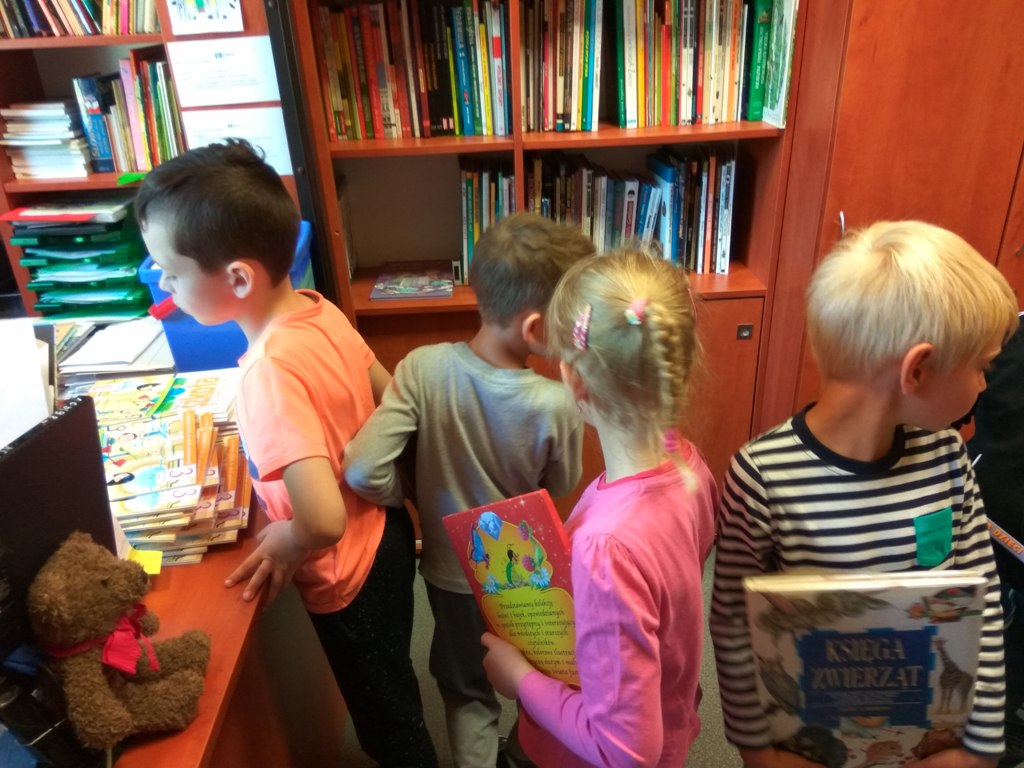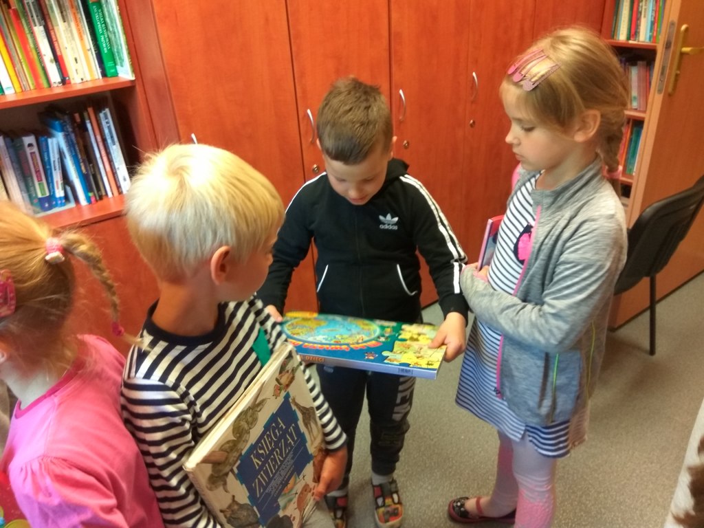 W dniu 8 maja dzieci z oddziału przedszkolnego wybrały się do biblioteki szkolnej, aby poznać zawód bibliotekarki. Rozmawiali z panią Jolanta Lis o jej pracy, zadawali jej ciekawe pytania. Na zakończenie spotkania wszyscy wypożyczyli książki do domu, by przeczytać je wraz z rodzicami.
