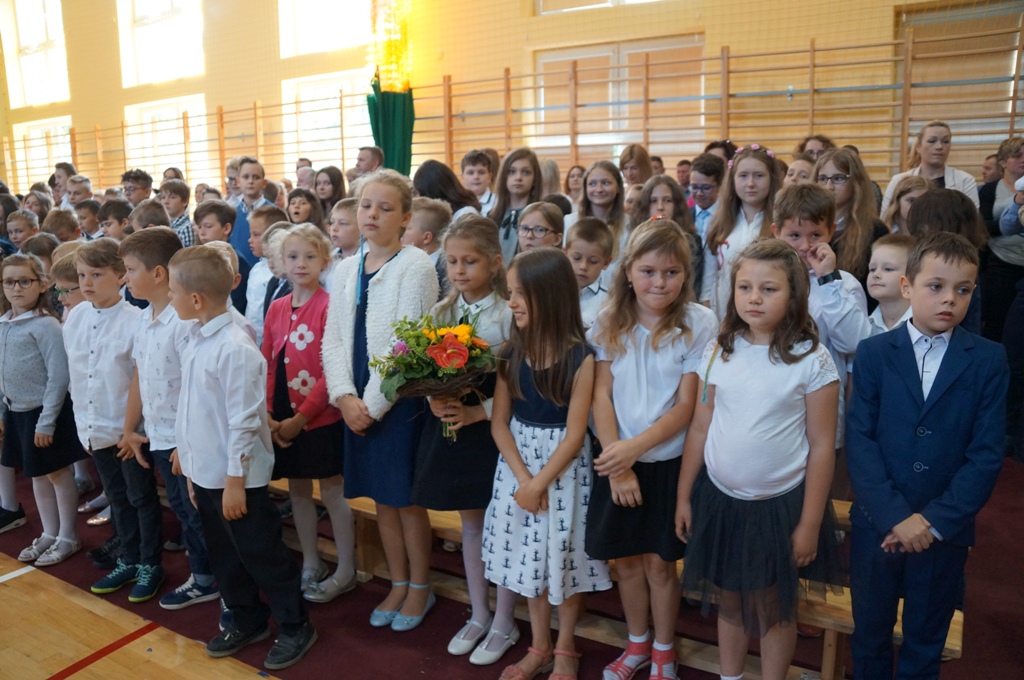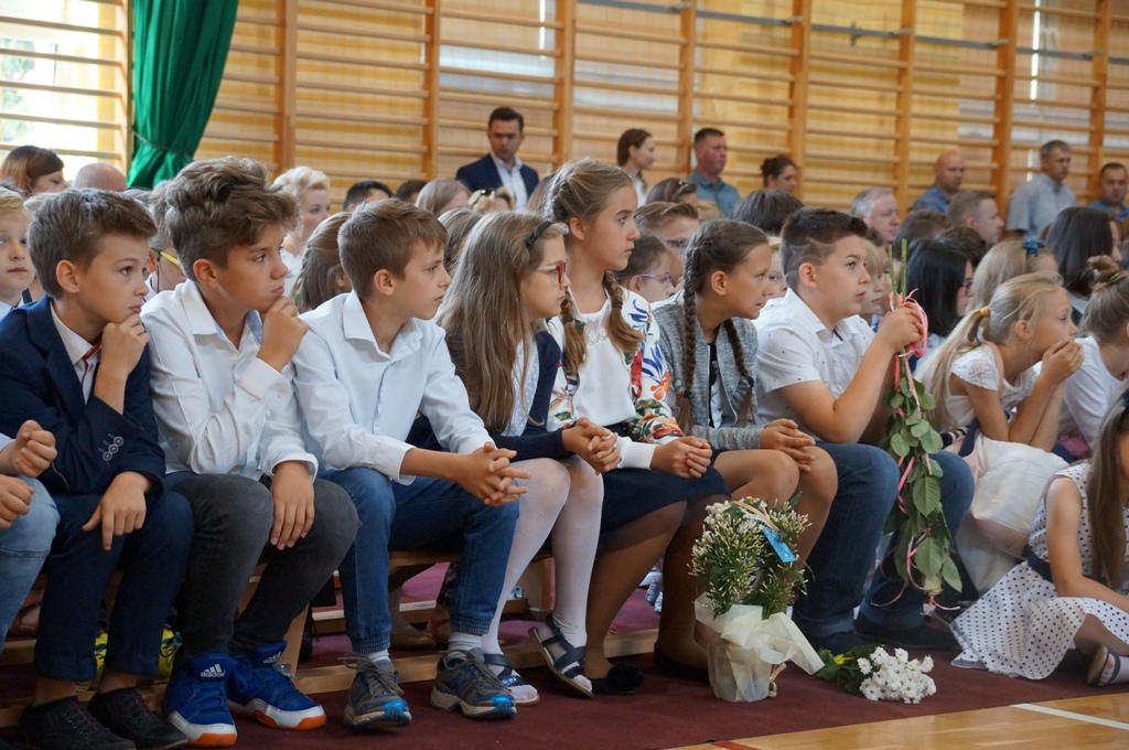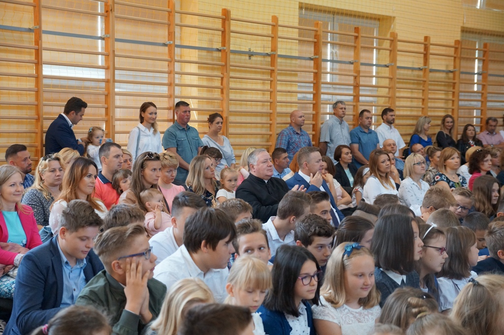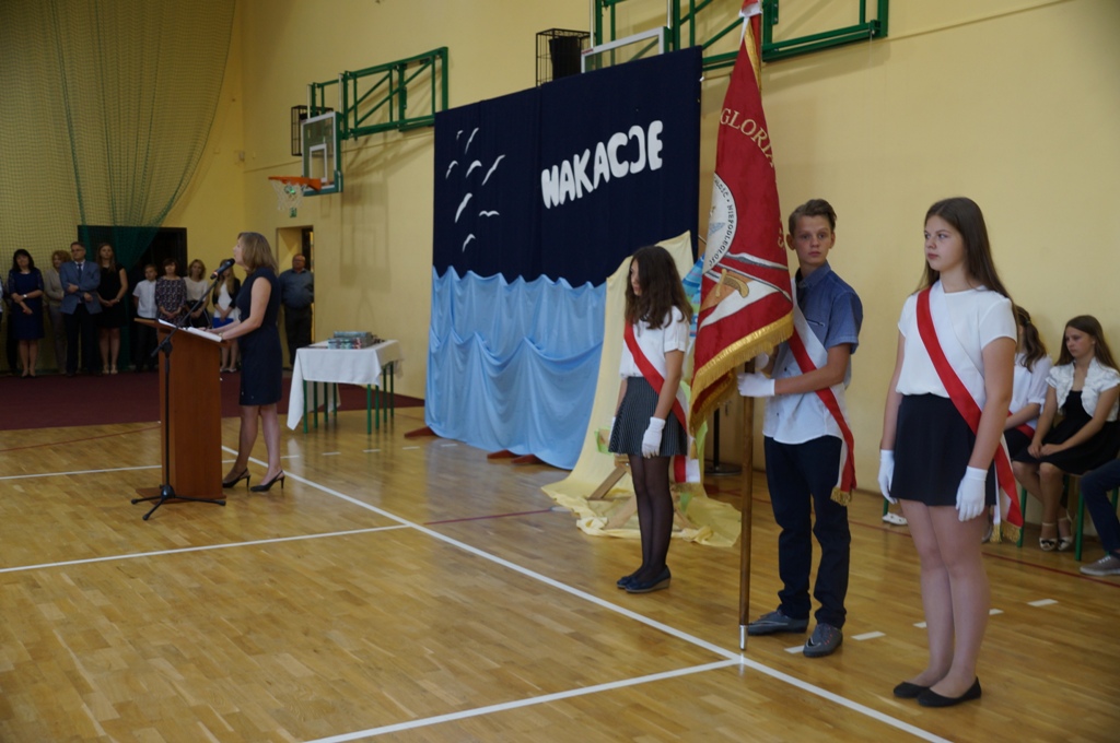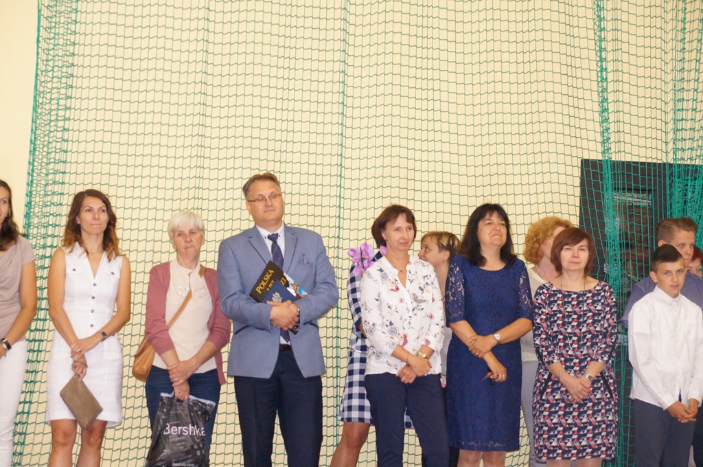 Następnie wszyscy udali się go szkoły, aby tam zakończyć mijający rok szkolny. Pani dyrektor - Małgorzata Wielgus - powitała wszystkich zebranych w sali gimnastycznej: uczniów, rodziców, nauczycieli oraz zaproszonych gości. W swoim wystąpieniu przedstawiła najważniejsze sukcesy naszych uczniów oraz działania podejmowane w szkole na przestrzeni ostatnich dziesięciu miesięcy.
