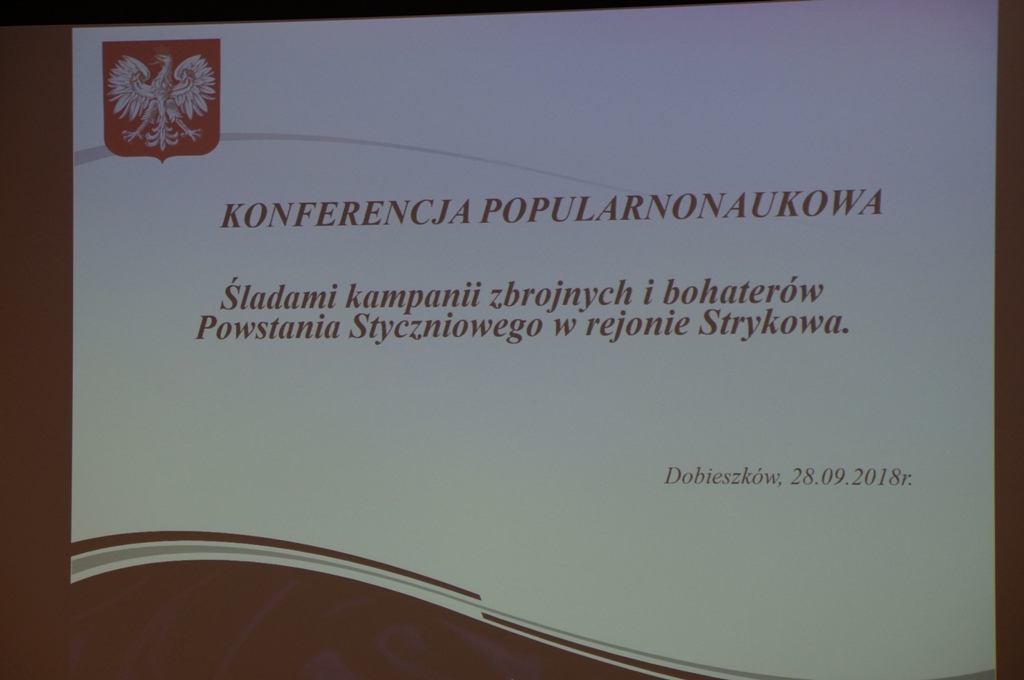 Uczniowie mieli okazję wysłuchać interesującej prelekcji ,,Śladami kampanii zbrojnych i dowódców Powstania Styczniowego w gminie Stryków. Bitwy pod Dobrą 24 II 1863 r. i Dobieszkowem 25 IX 1863 r.” zaprezentowanej przez dr Karola Jatczyka z Muzeum Tradycji Niepodległościowych w Łodzi.