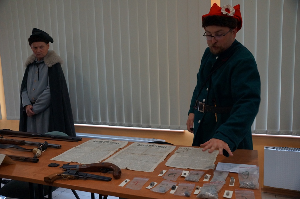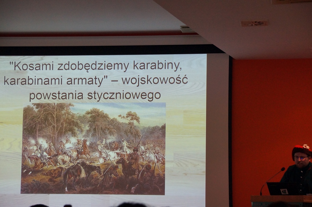 Uczestniczyli także w prezentacji grupy rekonstrukcyjnej ,,Stowarzyszenia Rekonstrukcji Historycznej Złoty Krzyż” oraz w wykładzie ,,Kosami zdobędziemy karabiny, karabinami armaty – wojskowość powstania styczniowego” wygłoszonym przez dr Michała Górnego.