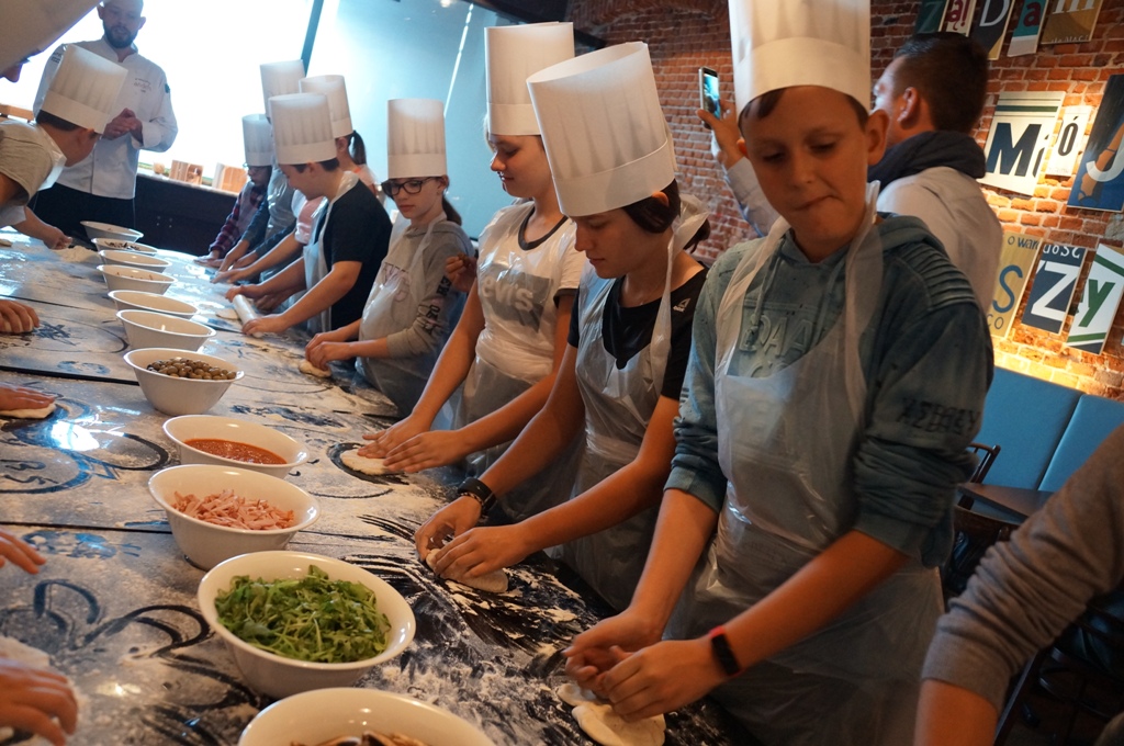 Dzięki gościnności pracowników hotelu uczniowie uczestniczyli w warsztatach kulinarnych, w czasie których pod okiem szefa kuchni samodzielnie przygotowywali pizzę. Młodzi kucharze w czasie zajęć wykazali się niezwykłą kreatywnością, ale też chętnie przyjmowali uwagi kucharzy.