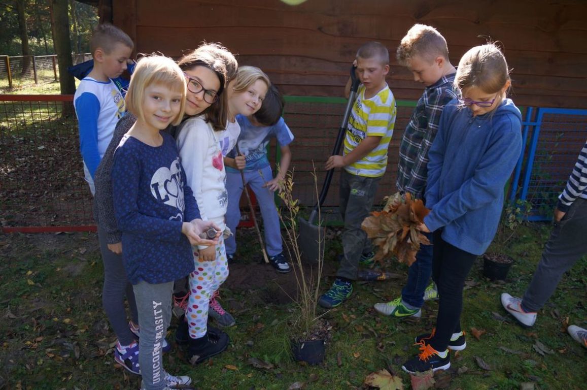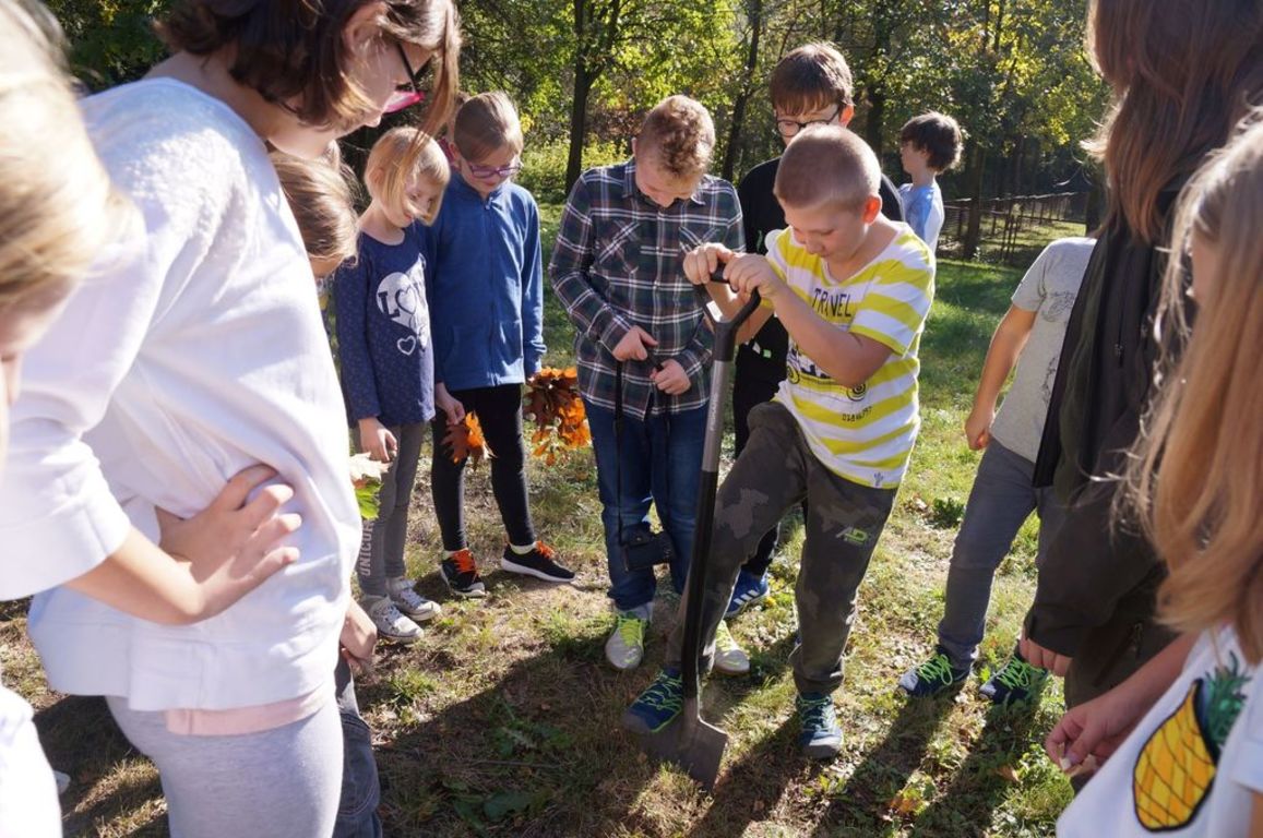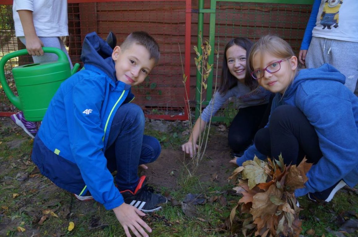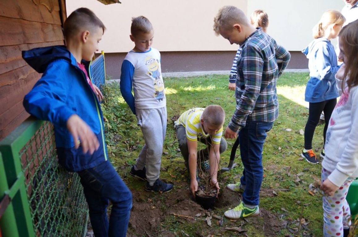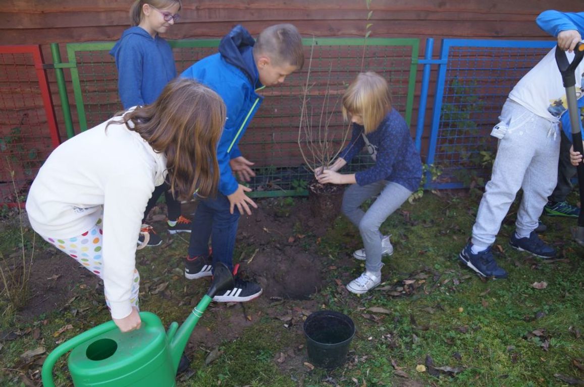 Jednak największą atrakcją tego dnia okazało się sadzenie drzew przez czwartoklasistów na terenie ogrodu znajdującego się przy naszej placówce. Dzieci z wielkim zapałem i radością sadzili drzewa, a sprzyjała temu również piękna, słoneczna, październikowa pogoda.