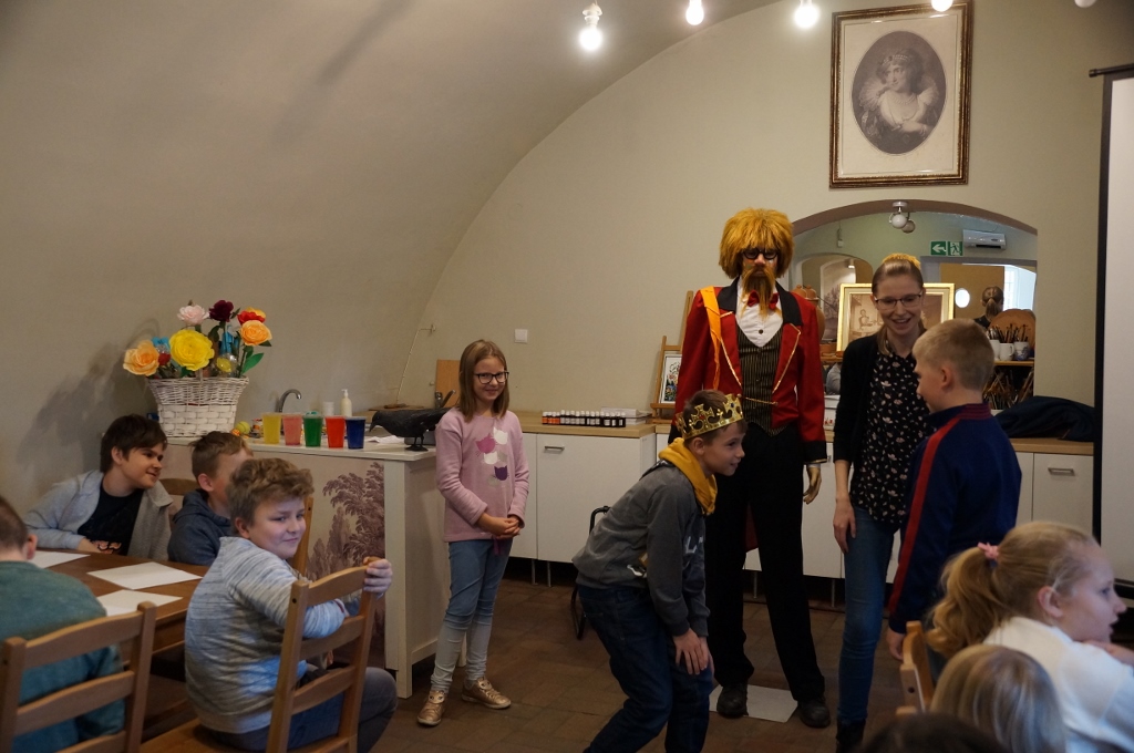 Pierwszym punktem programu było zwiedzanie przepięknego pałacu i parku w Nieborowie, który w 1983 roku stał się scenerią ekranizacji książki Jana Brzechwy „Akademia Pana Kleksa”. Dlatego też dzieci uczestniczyły w interesującej i wesołej lekcji muzealnej „Akademia Pana Kleksa w Nieborowie”, gdzie poznały kleksografię oraz brały udział w działaniach wzorowanych na niesamowitych pomysłach Pana Kleksa. Następnie pod opieką przewodnika zwiedziły budzący zachwyt pałac Radziwiłłów oraz otaczający go ogród.