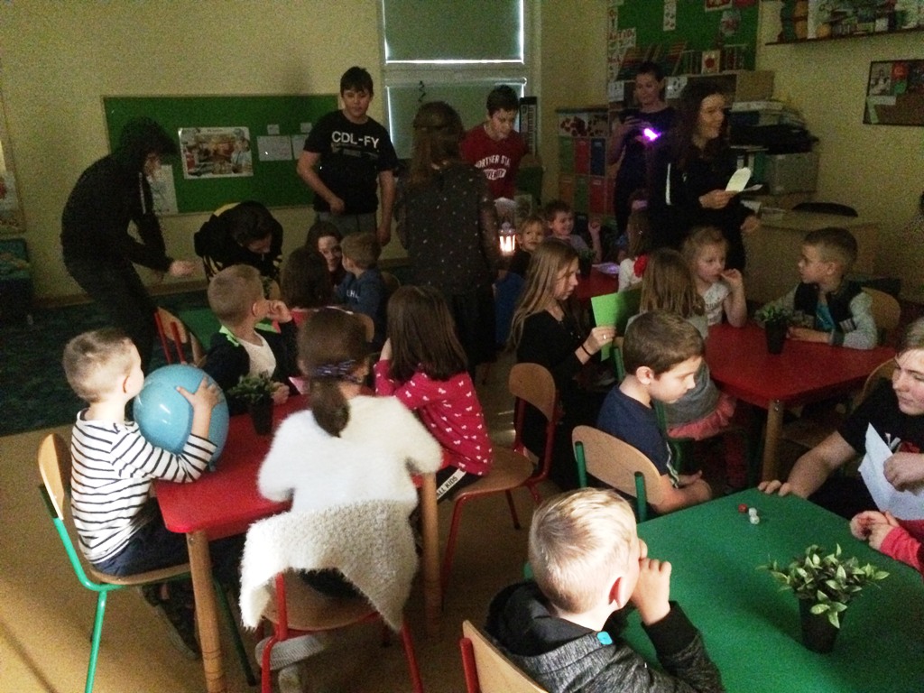 W czwartek - 29 listopada 2018 r. – uczniowie z klas VII a i VII b zorganizowali andrzejki dla całej społeczności uczniowskiej. W tym dniu szkoła została zamieniona w ,,salę wróżb”. Siódmoklasiści odwiedzali poszczególne klasy i przepowiadali wszystkim chętnym przyszłość z kart, dłoni, wróżyli ze szklanej kuli, magicznych serc, kombinacji cyfr z daty urodzenia. Każdy uczestnik andrzejkowych szaleństw niecierpliwością przekłuwał papierowe serce, aby odczytać imię swojej sympatii; losował magiczne bileciki, na których widniały nazwy zawodów przyszłości, bądź szukał swojej szczęśliwej liczby. Katalog wróżb był obszerny i bogaty, a każdy pragnął wywróżyć sobie coś wyjątkowego. Wiele śmiechu i radości dostarczały dzieciom przepowiednie. Wszyscy gorączkowo czekali na to, by dowiedzieć się, kto jako pierwszy z klasy zmieni stan cywilny, będzie bogaty i komu w życiu się powiedzie.