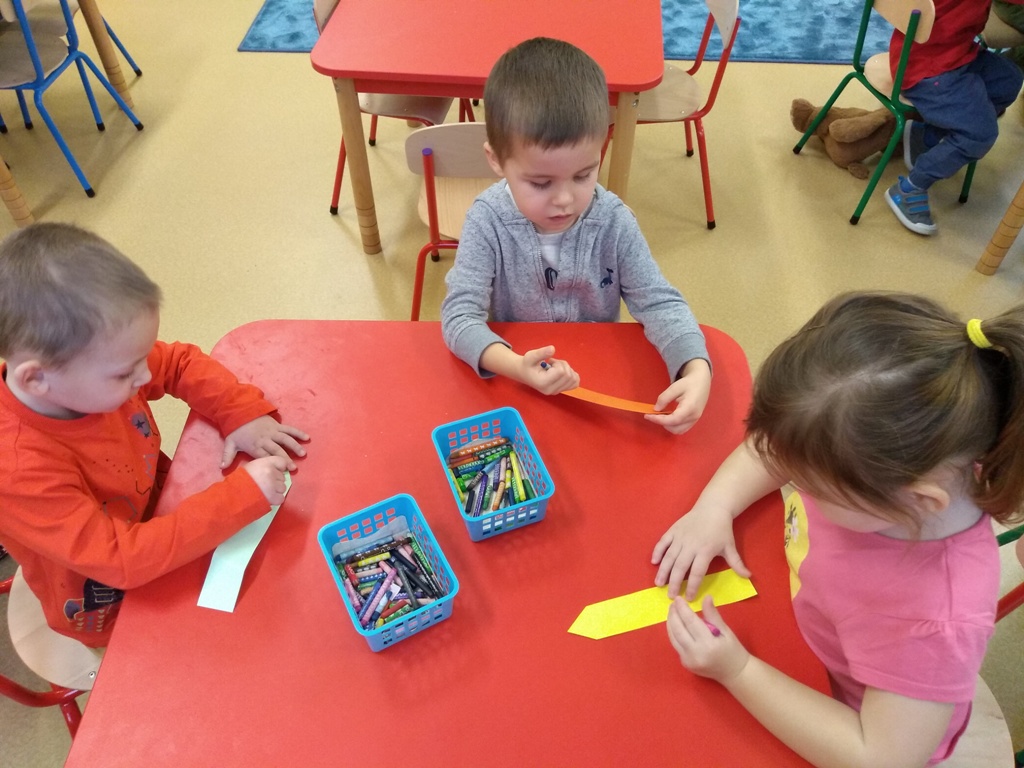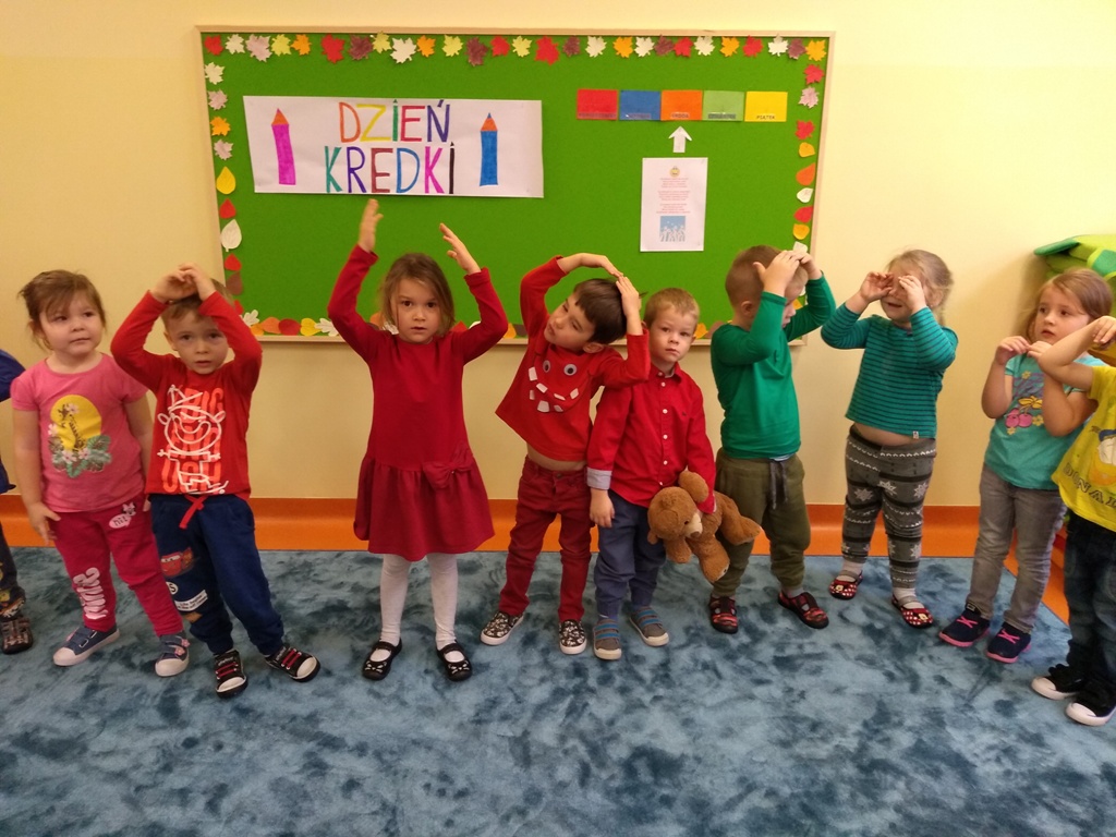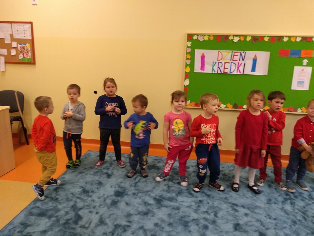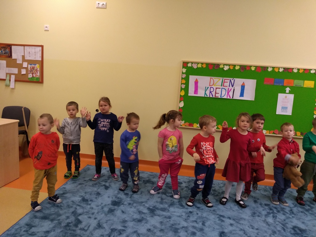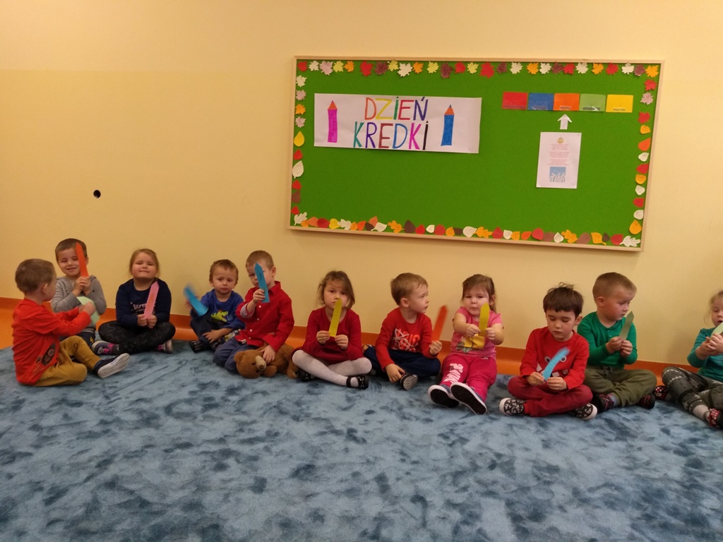W dniu 20 listopada dzieci z Oddziału Przedszkolnego uczestniczyły w obchodach Dnia Kredki. Wesoła piosenka „Kolorowe kredki” towarzyszyła przedszkolakom podczas zabaw. Kolejnymi zadaniami w tym dniu było ozdobienie papierowej kredki, segregowanie kredek różnego rodzaju, wymyślenie, co robią kredki w pudełku, co powiedziałyby dzieciom, gdyby umiały mówić. Na koniec zajęć każde dziecko otrzymało ozdobioną kolorową kredkę. Powstał też kredkowy teatrzyk. Kolorowe stroje dzieci uświetniły ten dzień.