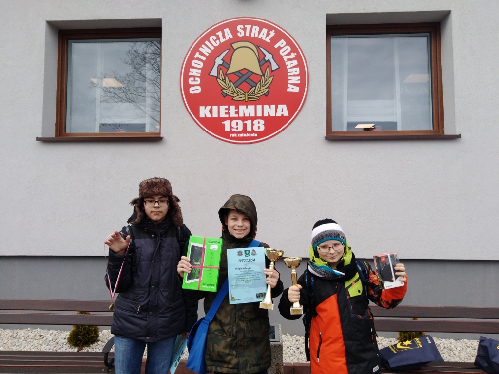 W dniu 07 marca 2019 r. w OSP w Kiełminie odbyły się gminne eliminacje Ogólnopolskiego Turnieju Wiedzy Pożarniczej ,,Młodzież Zapobiega Pożarom". Wzięli w nim udział uczniowie szkół podstawowych, gimnazjum oraz szkół średnich. Uczestnicy podzieleni na trzy grupy wiekowe musieli wykazać się obszerną wiedzą pożarniczą, podczas rozwiązywania testu. Jury wyłoniło po 3 osoby z każdej grupy wiekowej do dogrywki. W finale reprezentanci naszej szkoły zajęli czołowe miejsca.