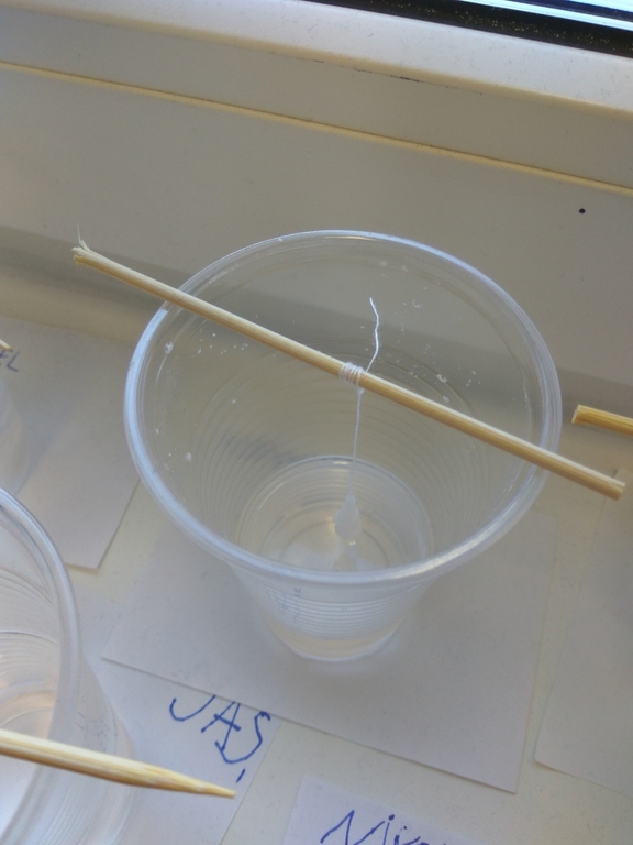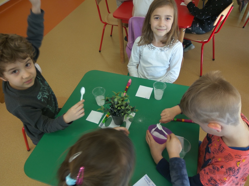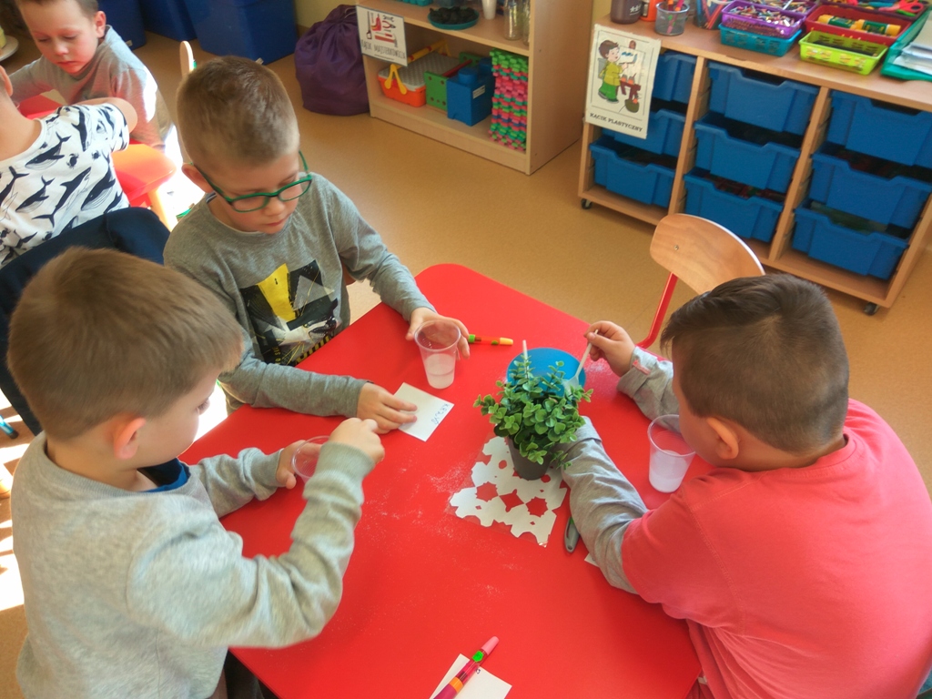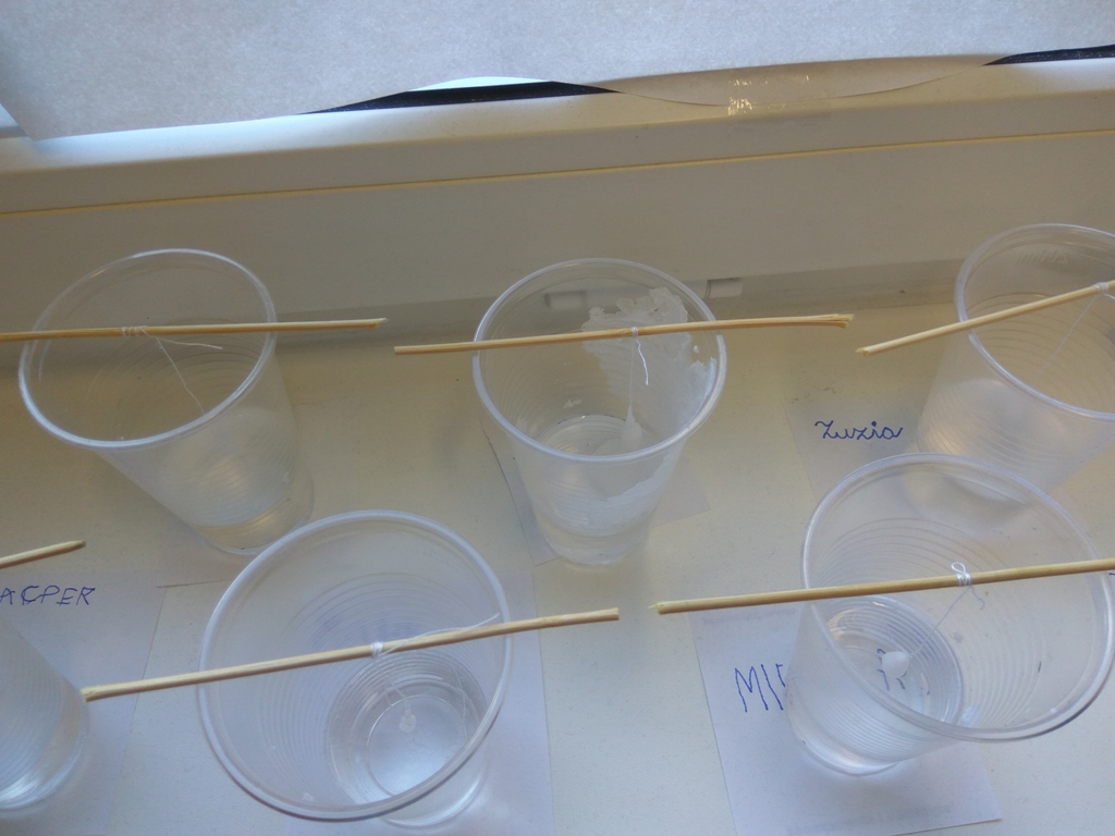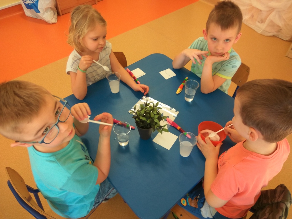 Dzieci, bawiąc się w naukowców, przygotowywały roztwór nasycony solą. Przez kilka dni obserwowały zmiany zachodzące na nitkach – pod wpływem parowania wody utworzyły się kryształki soli.