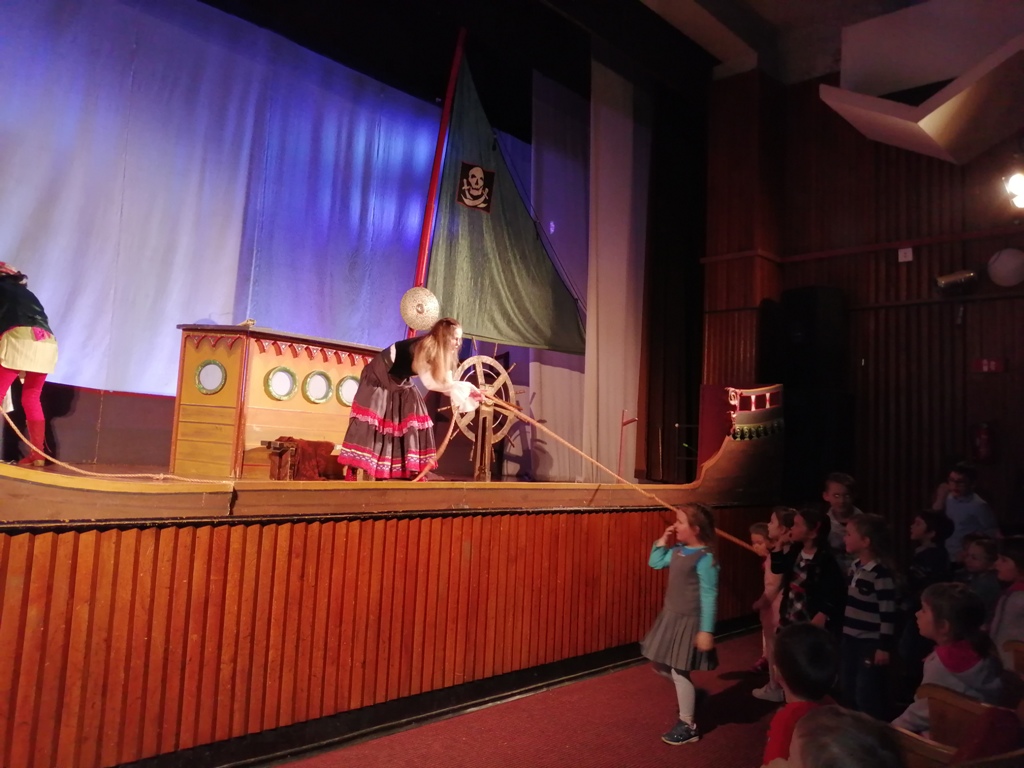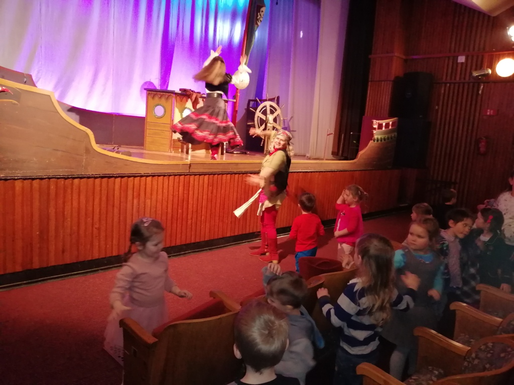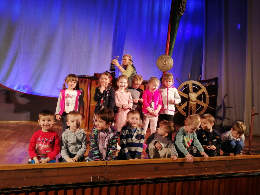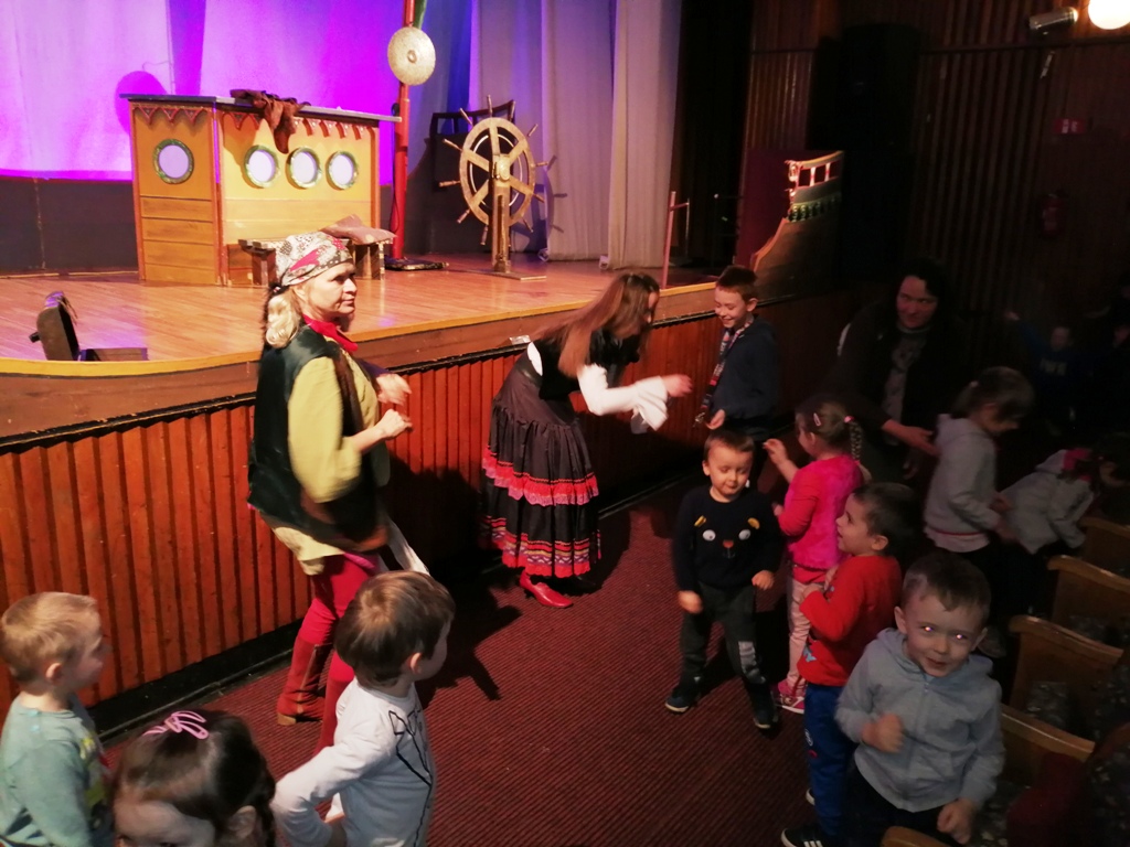 W dniu 28.03.2019r. przedszkolna grupa Misie odbyła wycieczkę do Teatru ,,Piccolo” w Łodzi na spektakl pt. ,,Skarb kapitana Haka”. Było to przedstawienie zawierające elementy patriotyczne oraz aktywizujące widownię. Dzieci czynnie uczestniczyły w przedstawieniu m.in. pomagając wyciągnąć kapitana Haka z wody, a po przedstawieniu aktorzy poczęstowali dzieci cukierkami i zaprosili do obejrzenia rekwizytów oraz sceny.