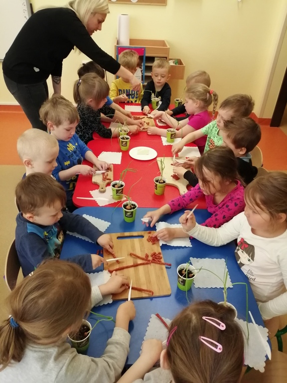 W dniu 8 maja przedszkolaki z grup ,,Misie” i ,,Pszczółki” uczyły się samodzielnie przygotowywać posiłek.