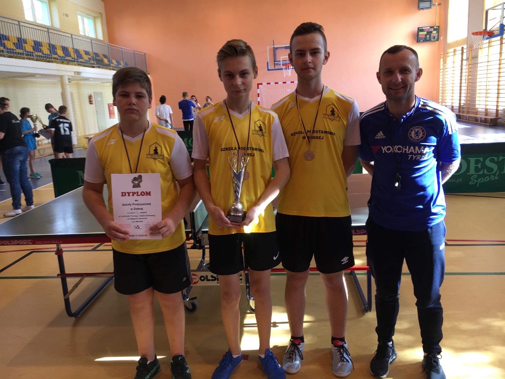 II MIEJSCE DRUŻYNY CHŁOPCÓW ZE SZKOŁY PODSTAWOWEJ W DOBREJ MIĘDZYSZKOLNYCH ZAWODACH TENISA STOŁOWEGO