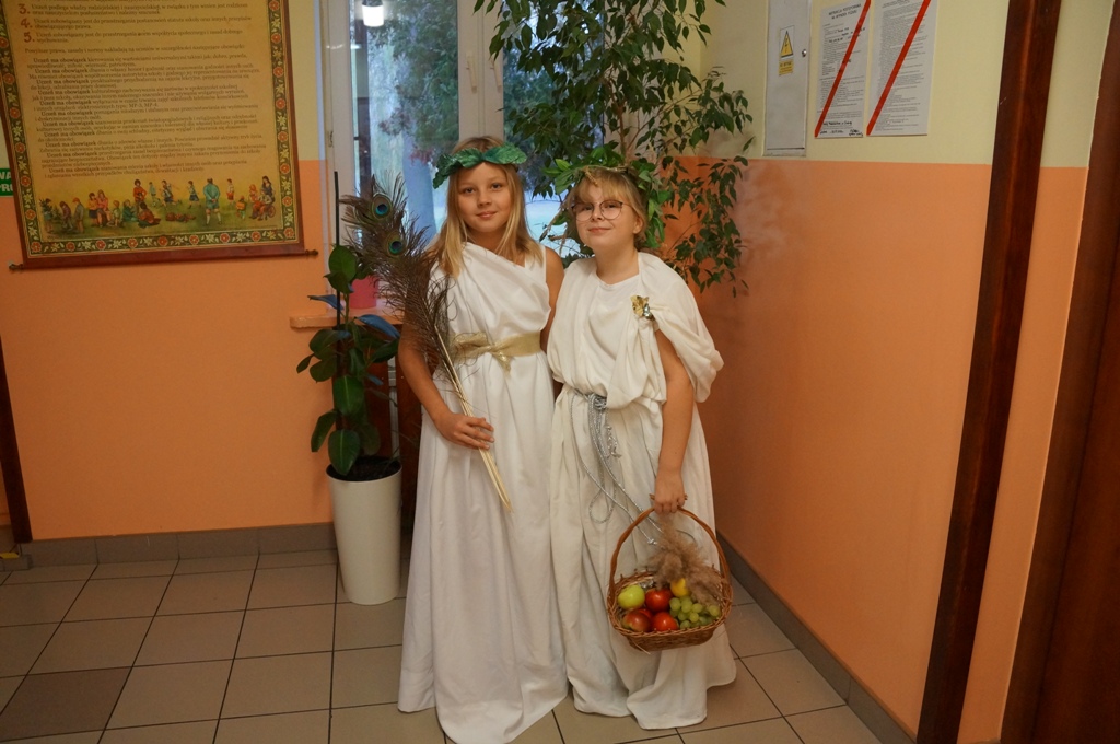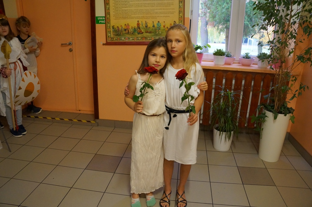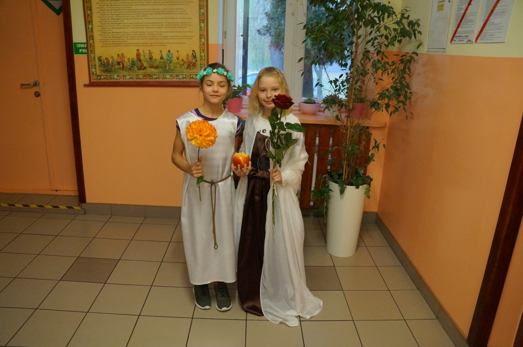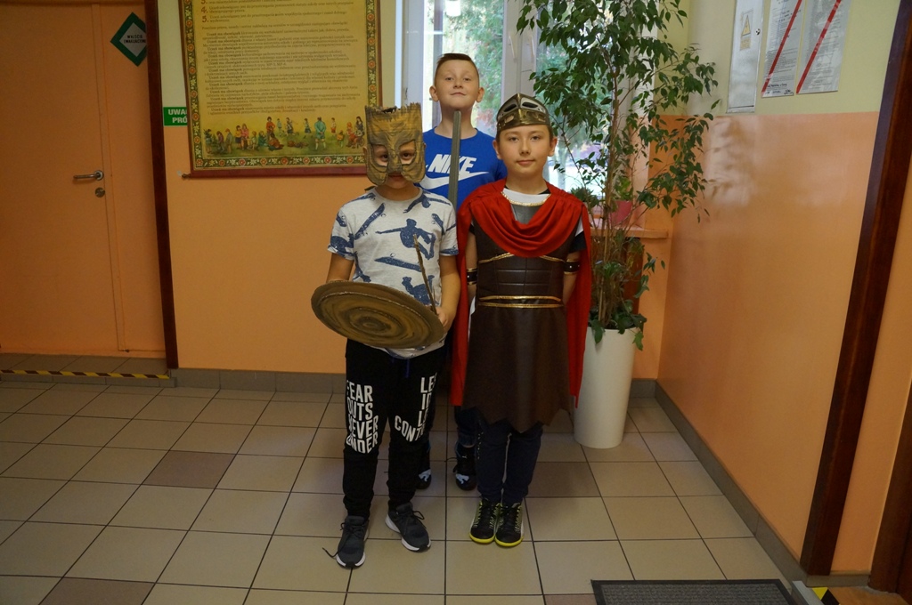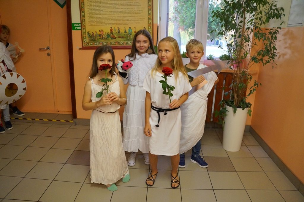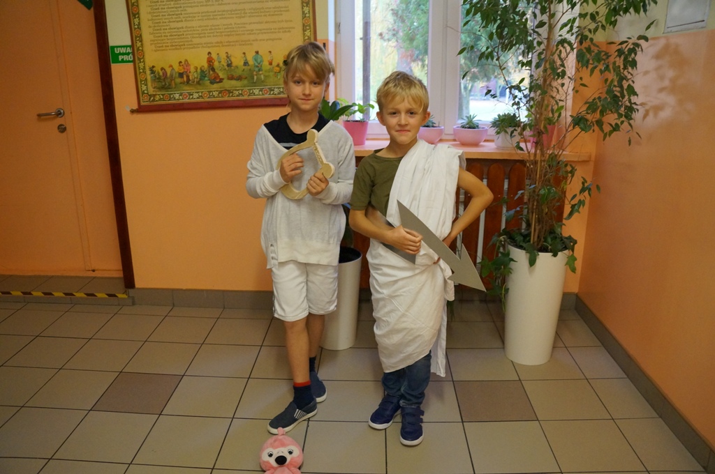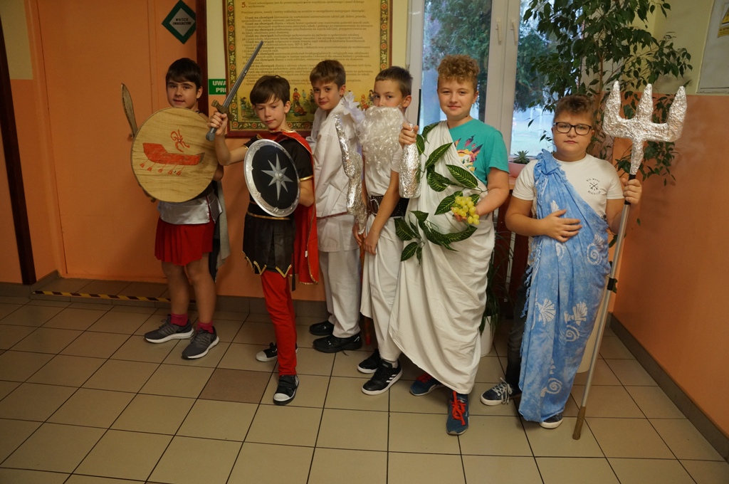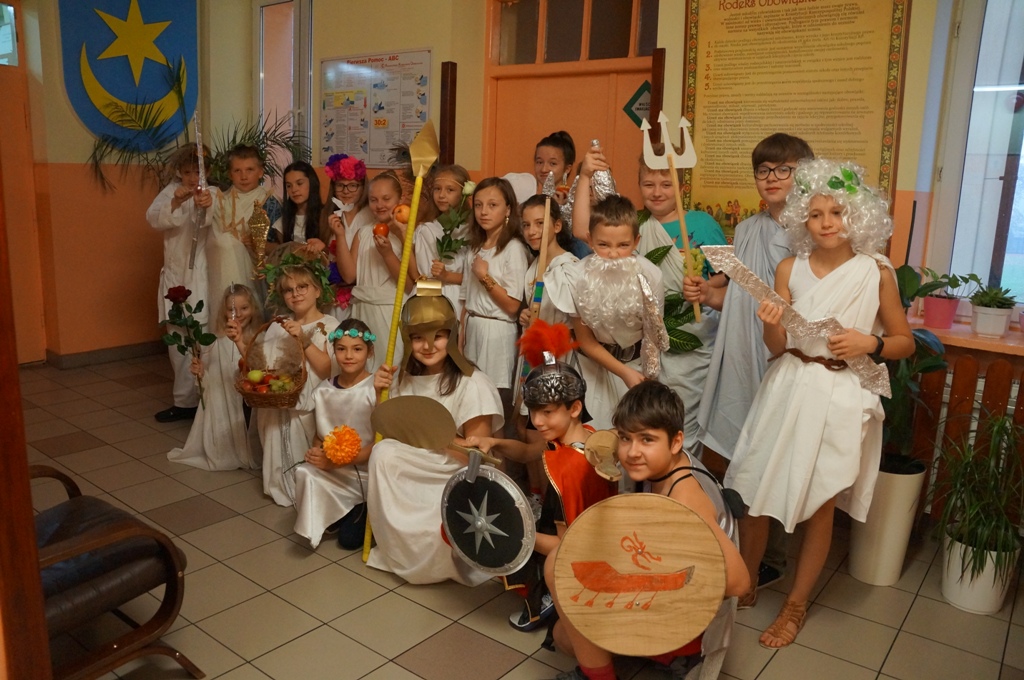 Uczniowie klas piątych odbyli podróż… w czasie. Zamienili się w starożytnych bogów i udali na grecki Olimp. Wszystko to podczas lekcji historii, podczas której każdy przeobrażał się w jedną z mitologicznych postaci. Pomysłowość i inwencja twórcza uczniów była niezwykła.