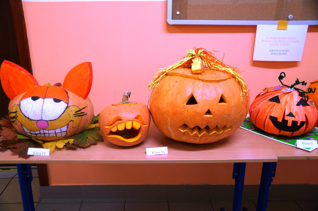 31 października komisja złożona z przedstawicieli Samorządu Szkolnego rozstrzygnęła konkurs na dynie ozdobione przez uczniów naszej szkoły. Kochani , prace, które wykonaliście pod okiem wychowawców i rodziców, są niesamowite! Dziękujemy, że tak wspaniale przygotowaliście się do tej akcji. Okazuje się, że wcale nie jest łatwym zadaniem wybrać najlepsze prace i wskazać miejsca na podium w naszym konkursie , gdyż każda dynia była niezwykła, starannie wykonana, przemyślana kolorystycznie, ozdobiona na swój indywidualny sposób. Dlatego ogłaszamy: